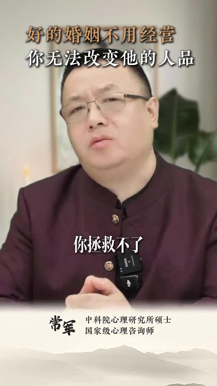 好的婚姻不用经营,你无法改变他的人品。 中科院心理研究所硕士,国家级心理咨询师常