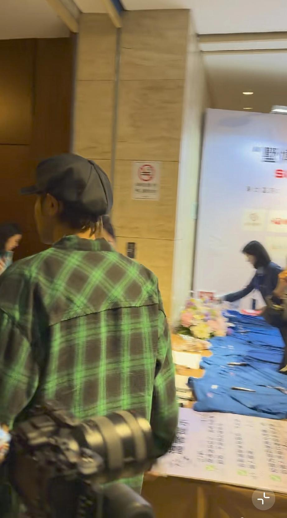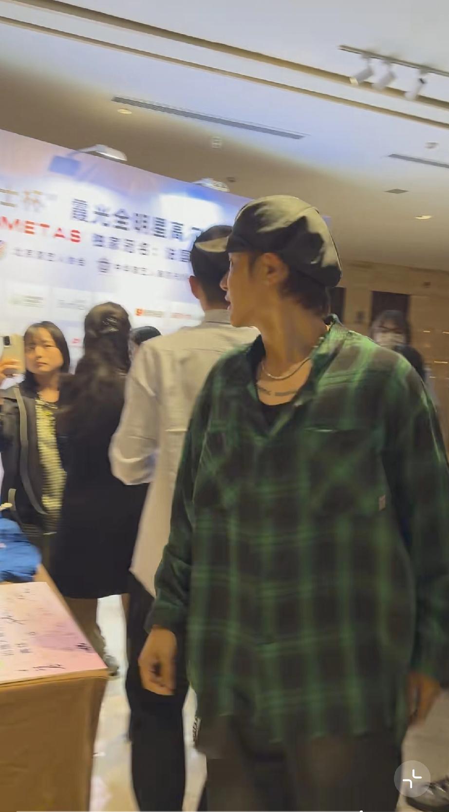 罗志祥穿了一件绿色格子的上衣,戴了一顶帽子,打扮挺休闲,但近距离下他的脸部稍微有点浮肿,肤色发黑,和以前不太一样。