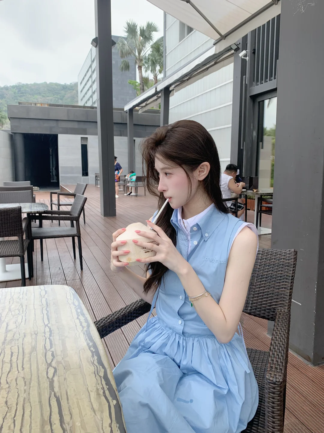 OotD 每日穿搭 蓝色连衣裙 夏季连衣裙 蓝色系穿搭 miu系