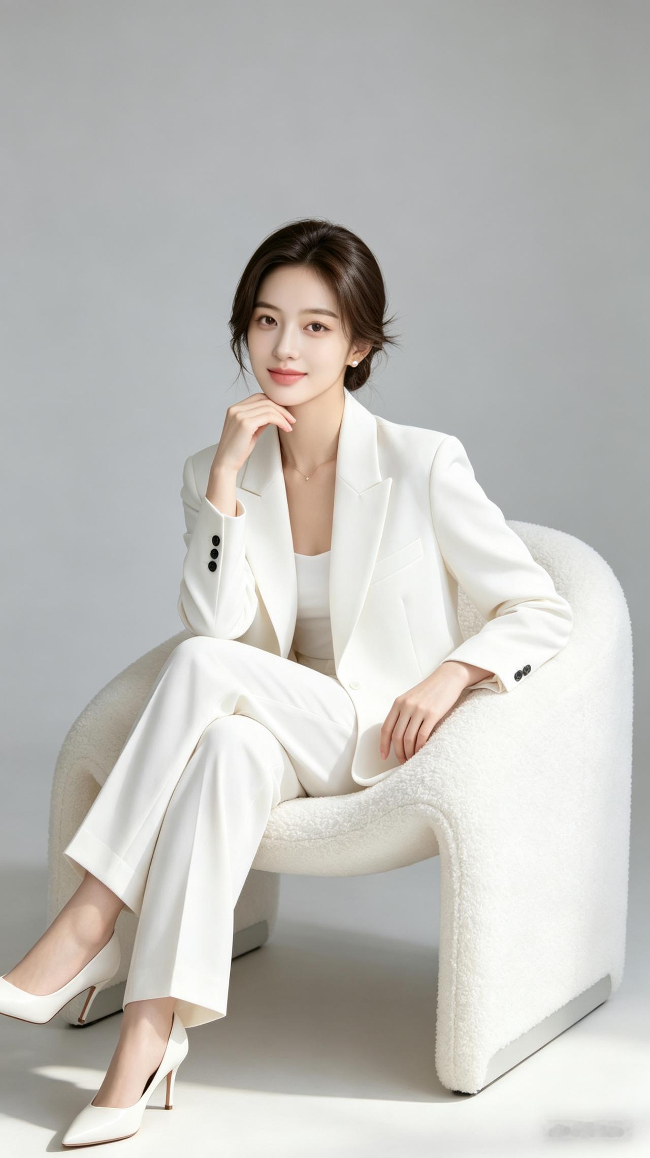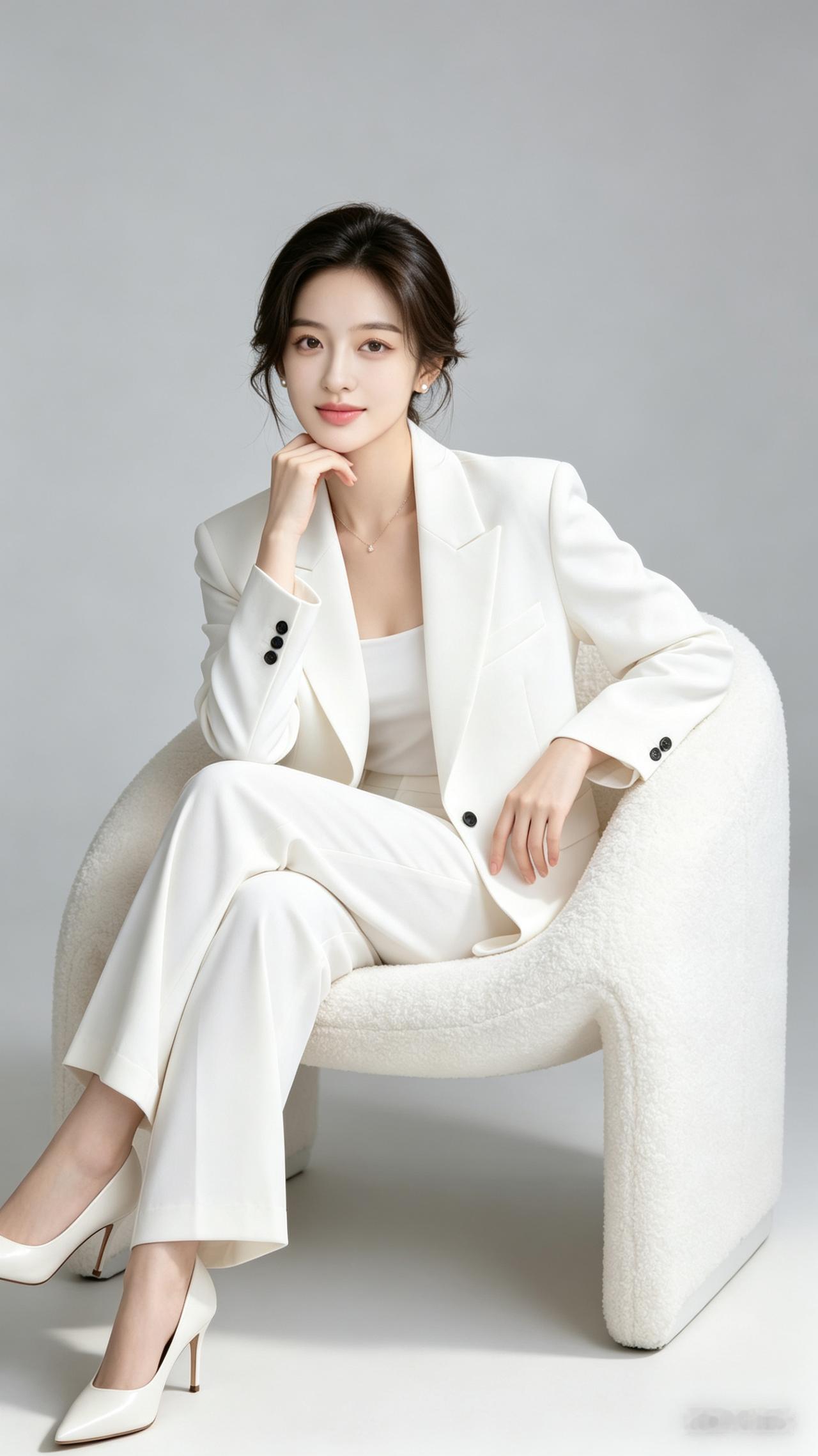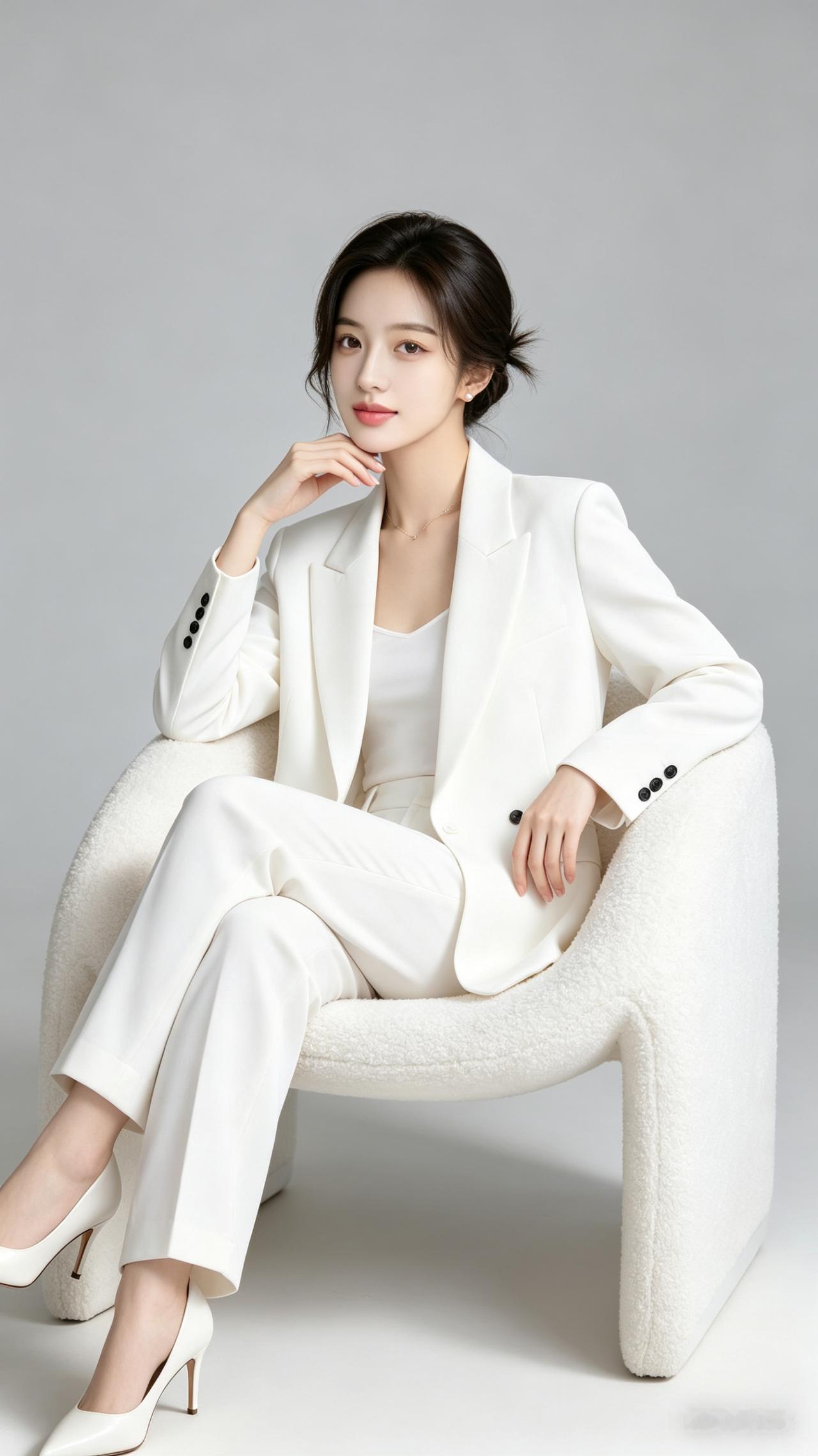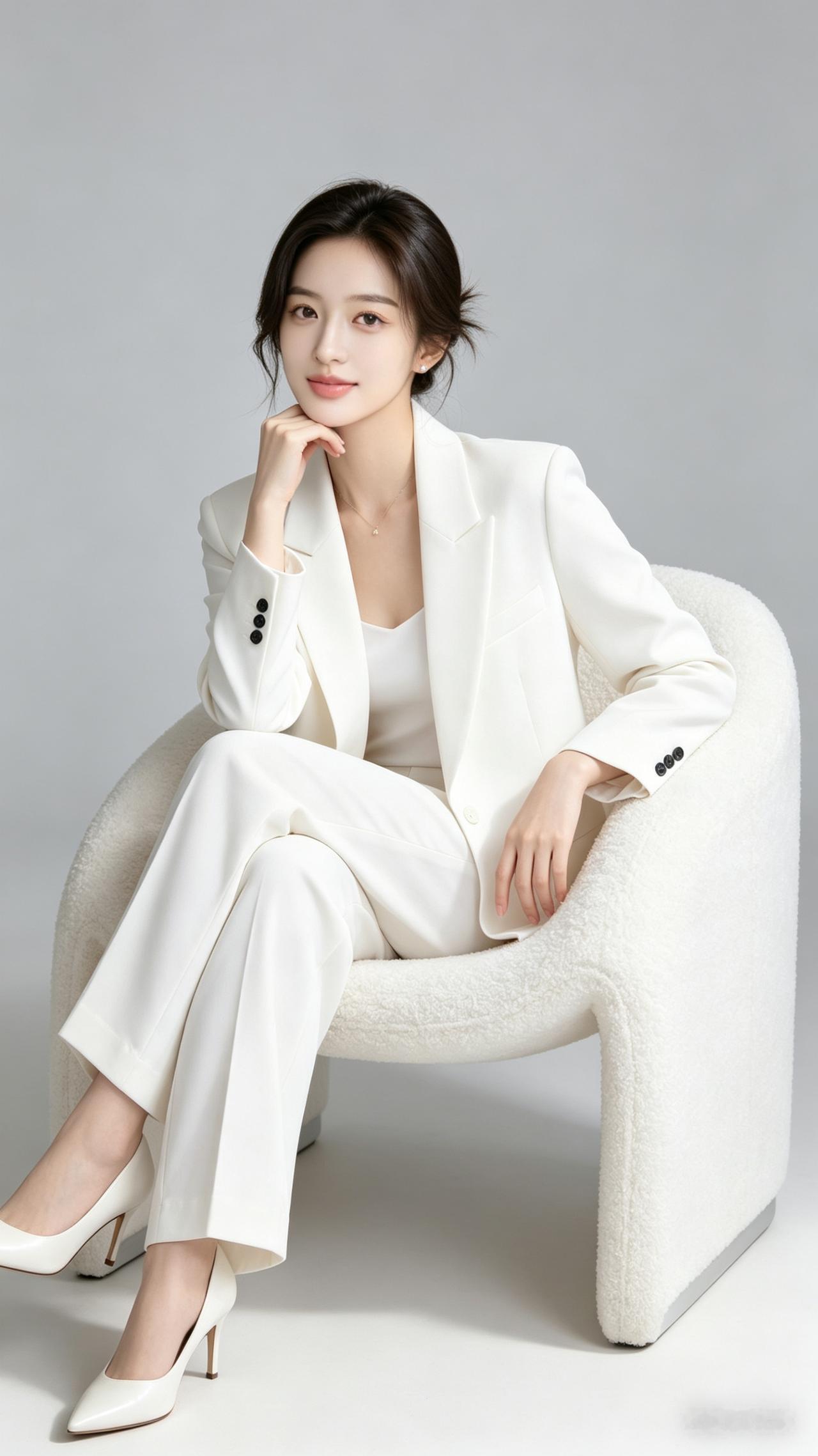 优雅白领风,白色西装套装搭配高跟鞋,尽显职场魅力!