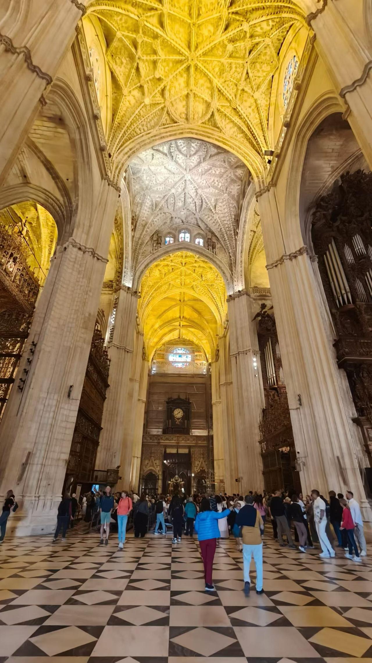 西班牙塞利维亚大教堂打卡,世界最大哥特式教堂名不虚传,穹顶上的华美装饰,富丽堂皇,沉浸式感受西班牙的宗教和艺术之美,叹为观止! 西班牙塞利维亚黄金塔(八百年一座塔,一座城)真的太惊艳了。[赞][玫瑰][福][彩虹]