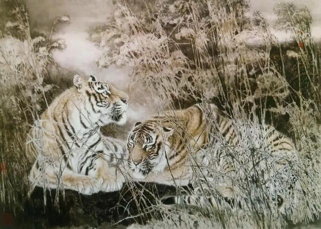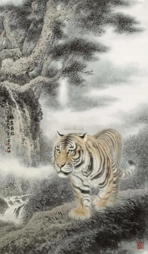 全国美展画虎获奖画家冯大中 冯大中 1949年4月生于辽宁盖县,中国美协理事,辽