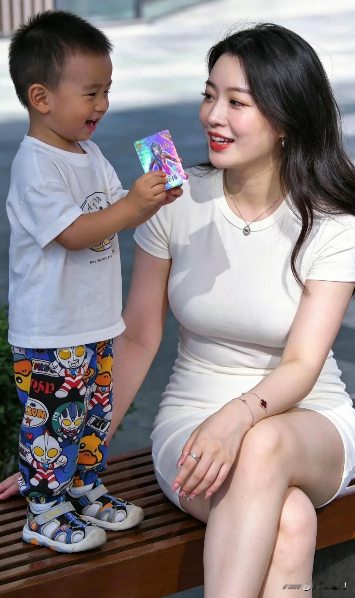 暖阳穿过枝叶洒落,斑驳地映在木质长椅上。小男孩手持那张散发着霓虹光泽的奥特曼卡片,眼中闪烁的光芒,比卡片上的镭射纹路更加璀璨。他凑到近前,带着些许炫耀又期待的小得意,想要将这份属于他的“宝藏”分享给眼前最亲近的人。