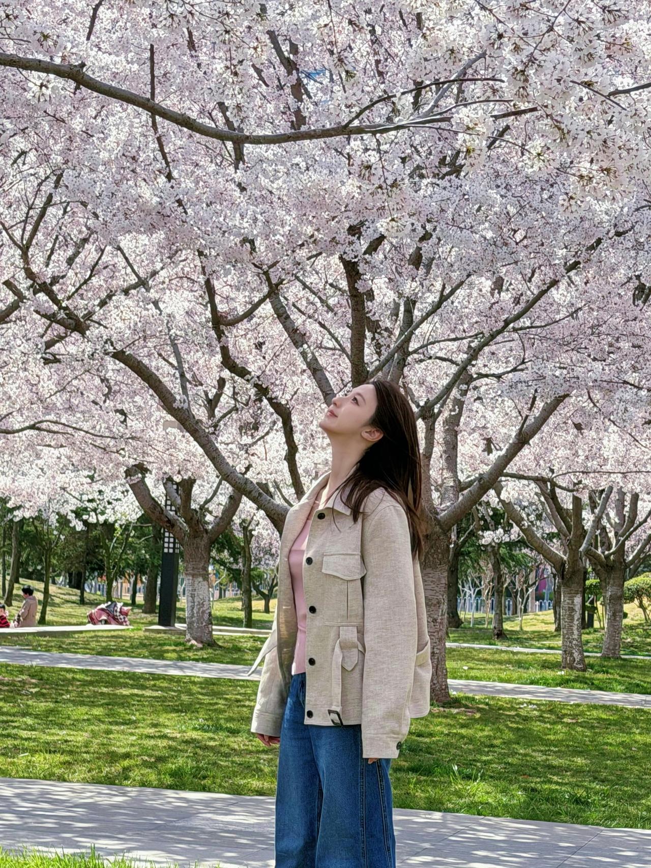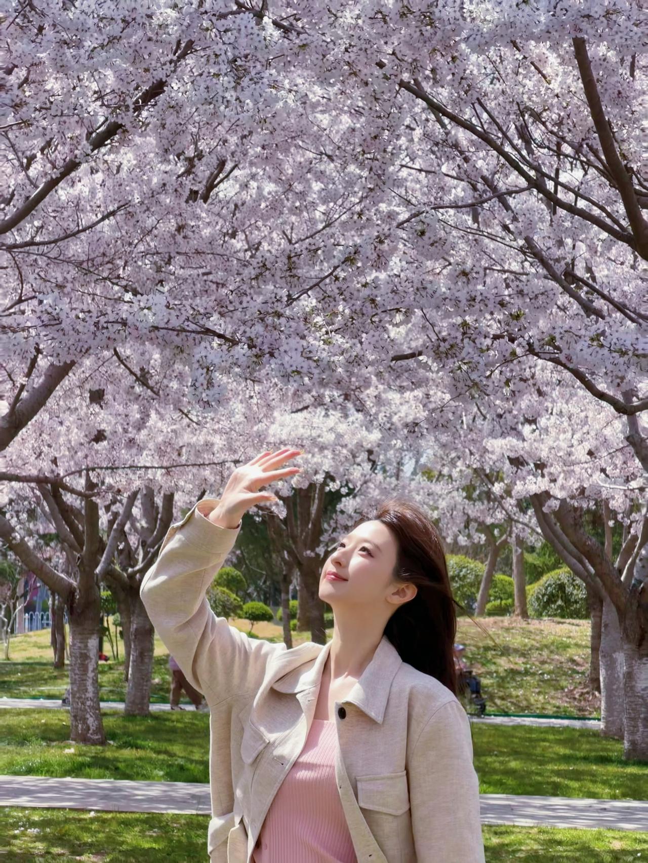 浅杏色外套+粉色内搭,温柔系穿搭yyds! 背靠满树粉樱,或漫步樱花大道, 利用