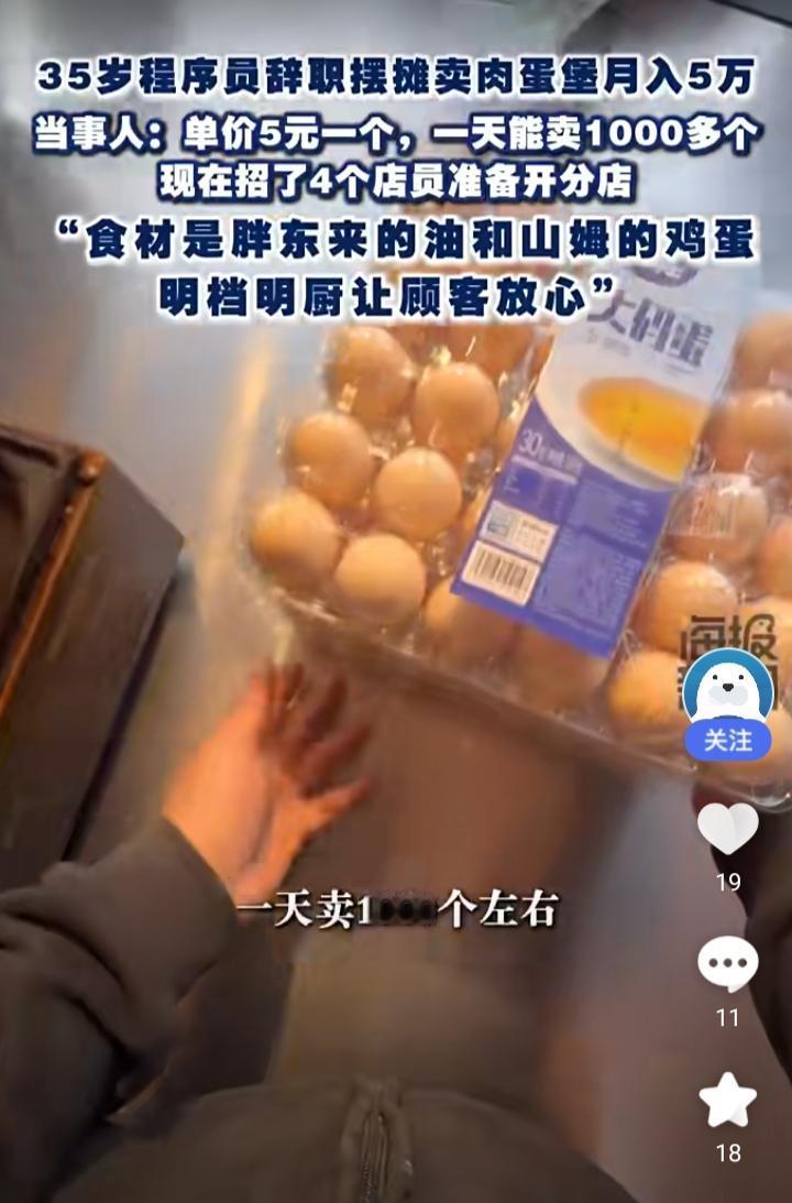 北京一位35岁辞职的程序员刘先生最近火了。他辞去程序员的工作后,跑去摆摊卖肉蛋堡,这事儿一出来就引发了大家的关注。