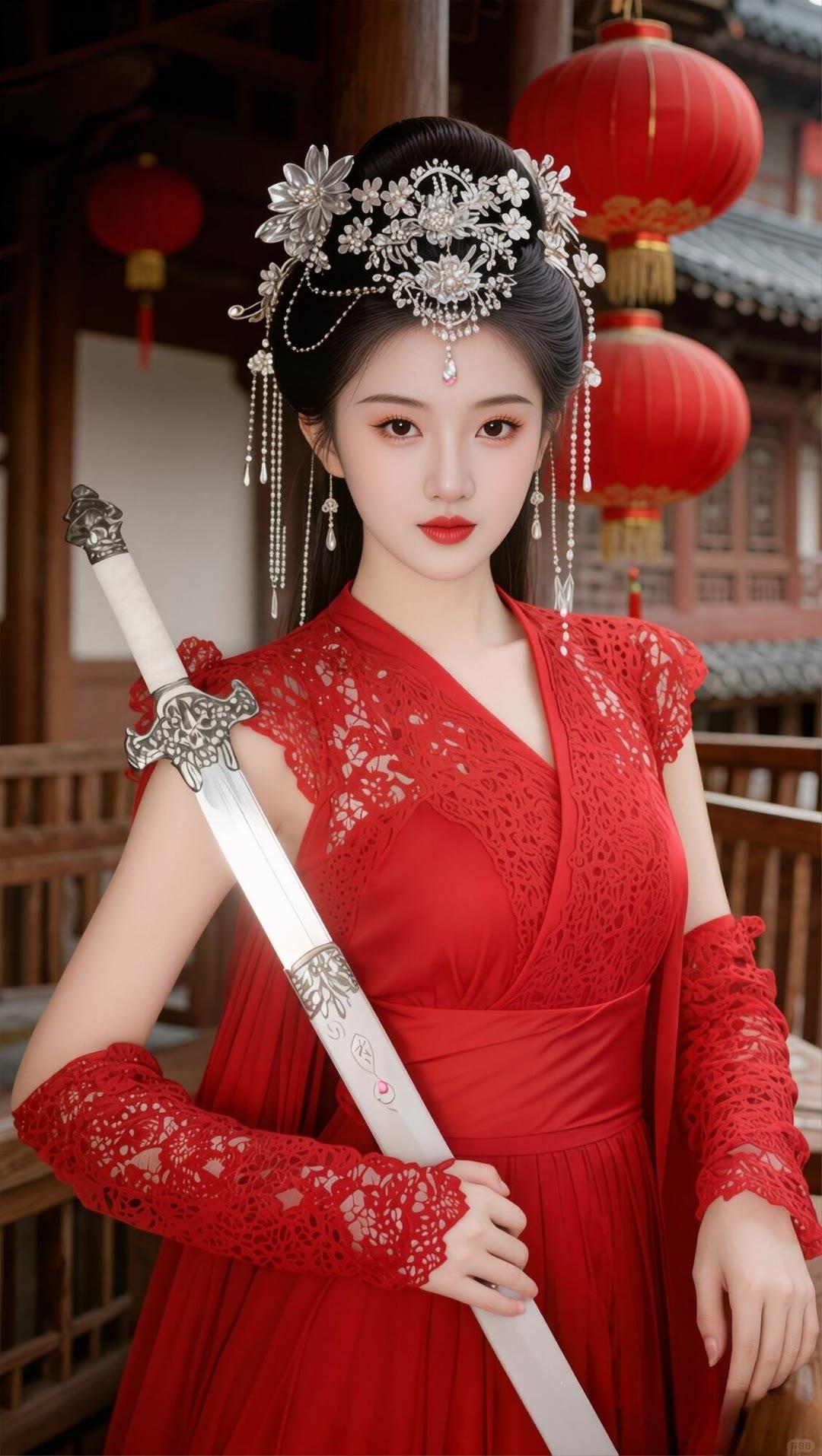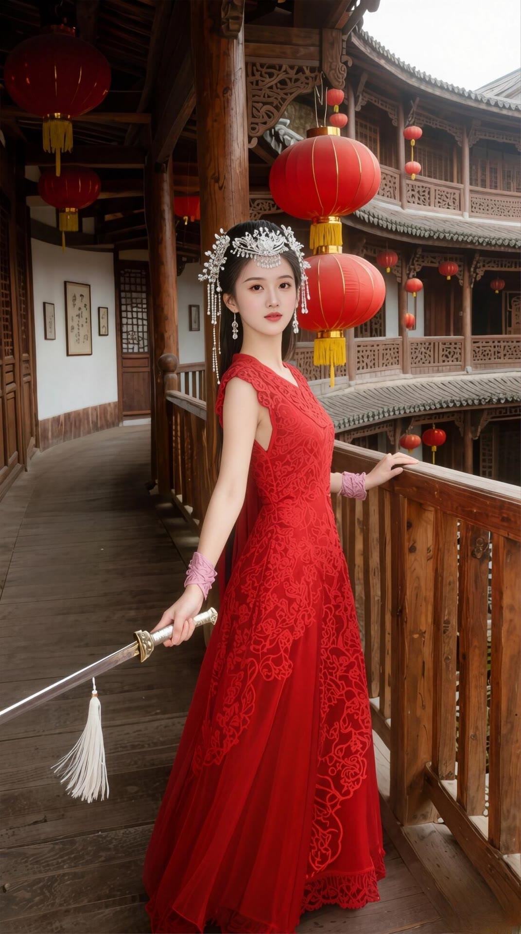 穿越时空的古典美人,红衣飘飘,手持长剑,韵味十足!