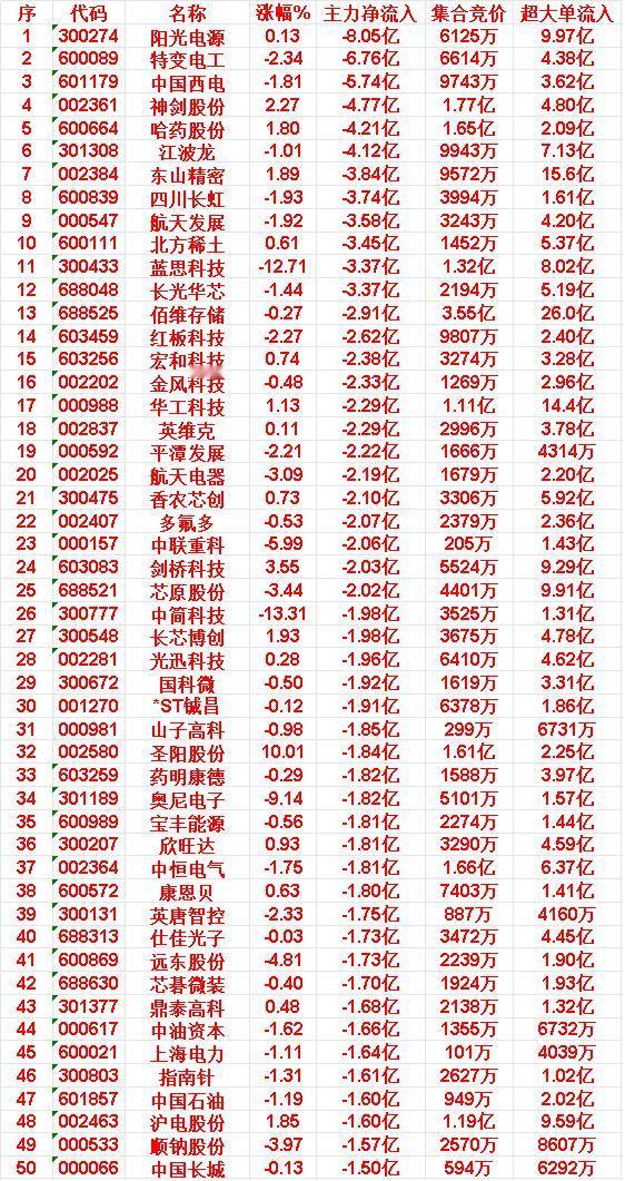 4月16日中午收盘,主力资金“大幅卖出”的50名单: