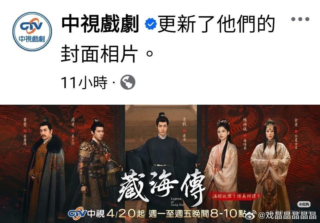 另外中视 FB 也更新了封面为《藏海传》,并置顶了!4月20日,中视全台首播《藏海传》!肖战藏海传