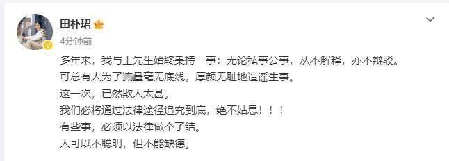 最后:不多言,却让大家都明白,自己的老公被抓纯属谣言!而且还会拿起法律武器维护自我,惩罚造谣者。