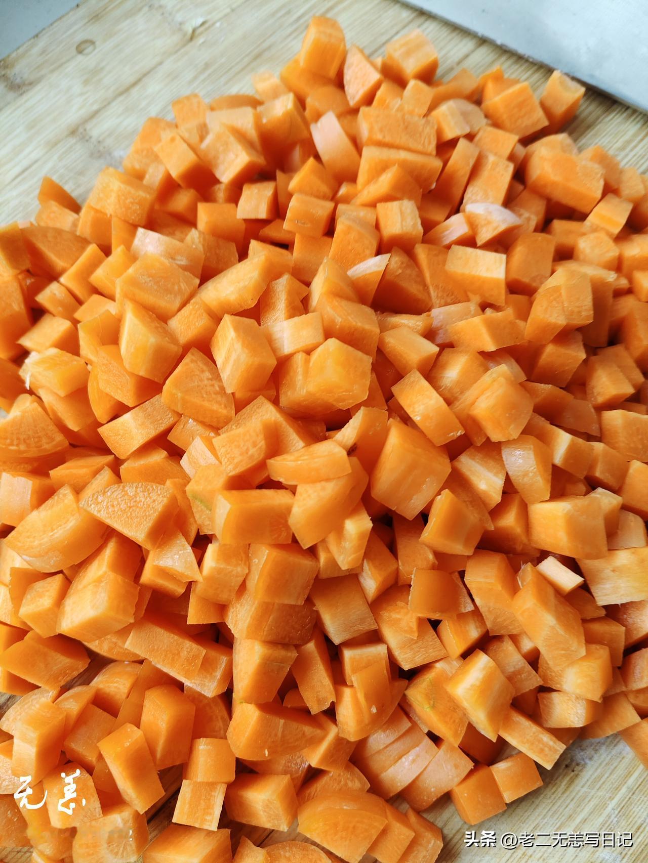 胡萝卜切丁焯水装袋子。