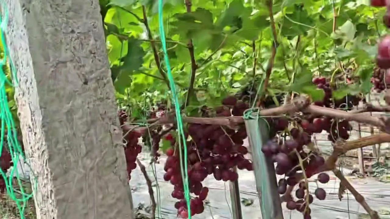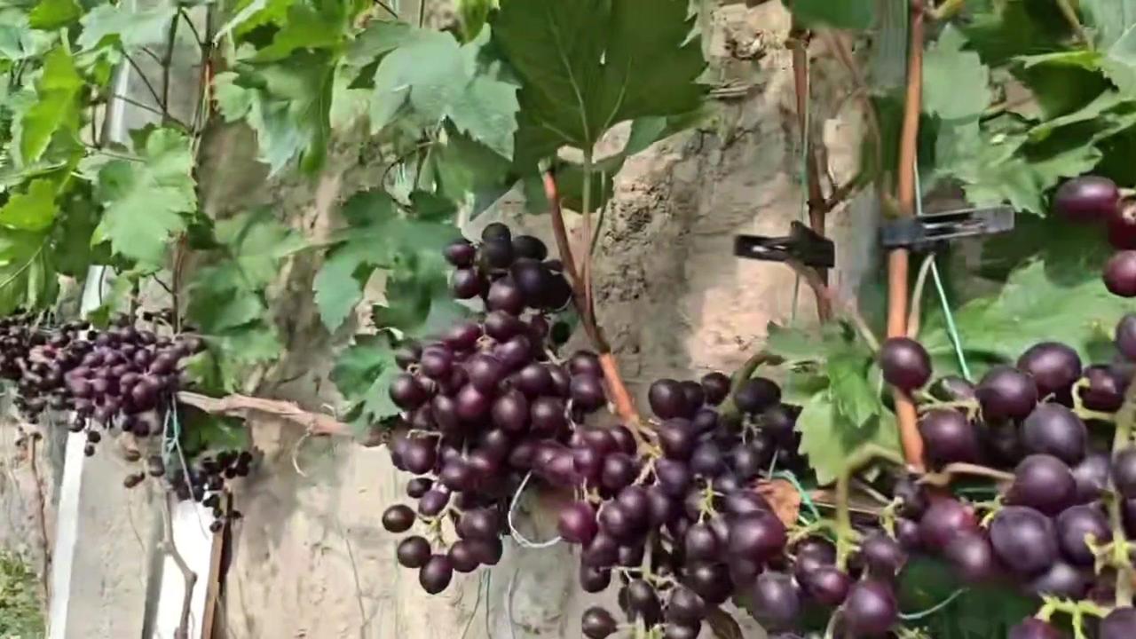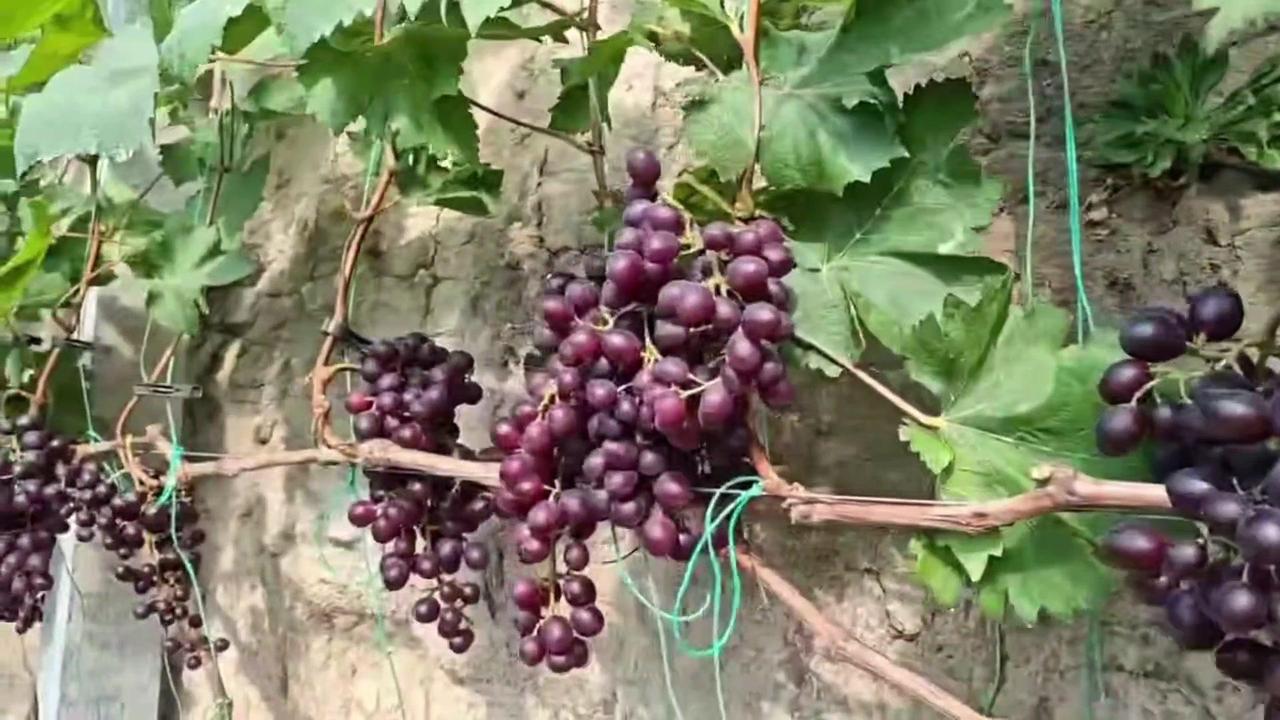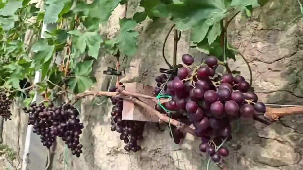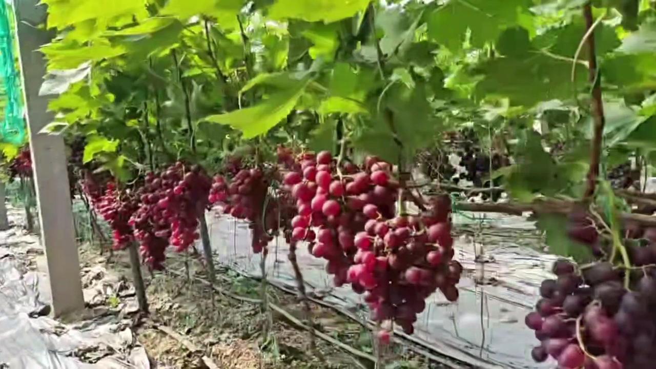 暖棚种植的"春红三号"葡萄今年第一次挂果就惊艳了!