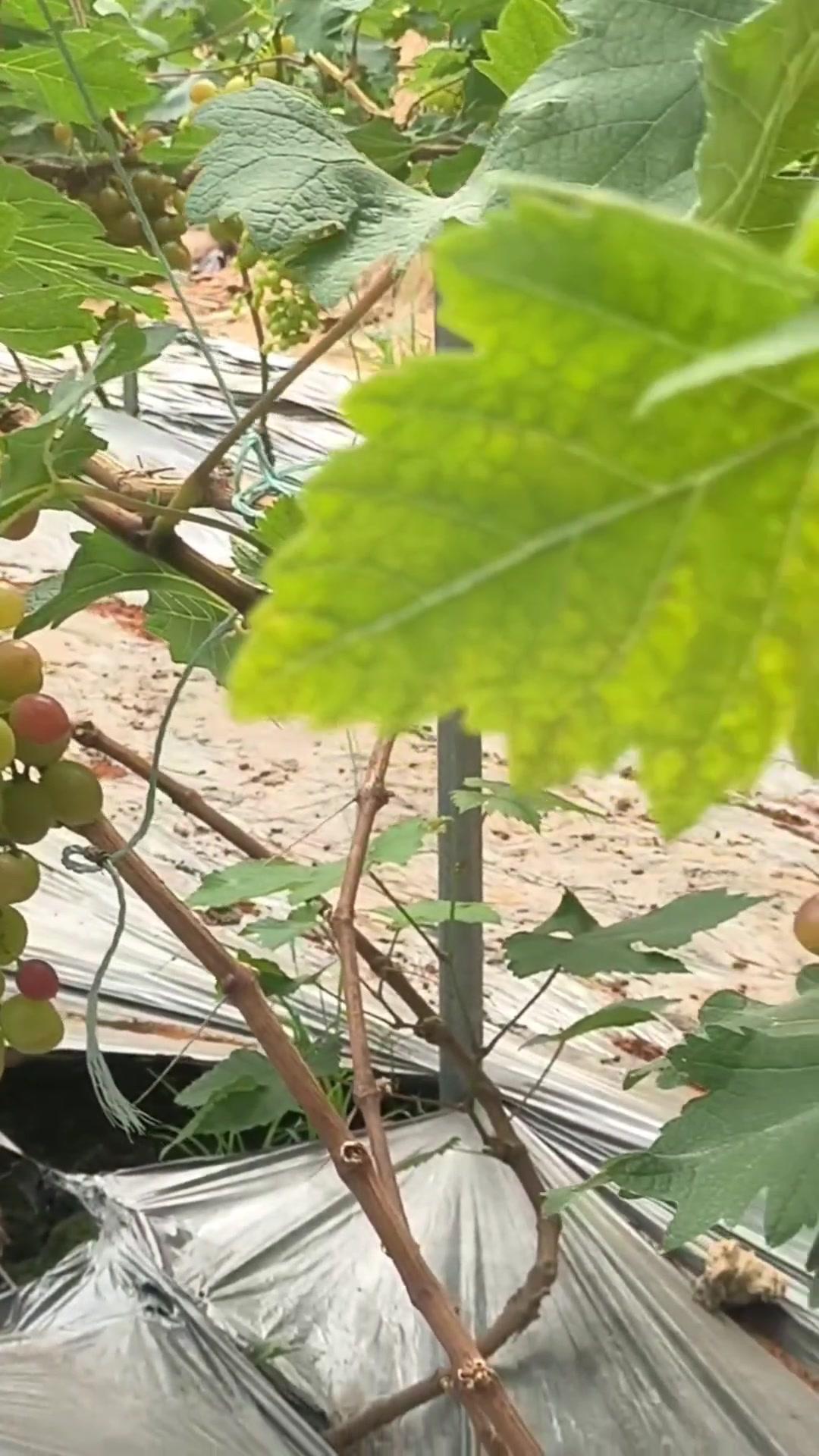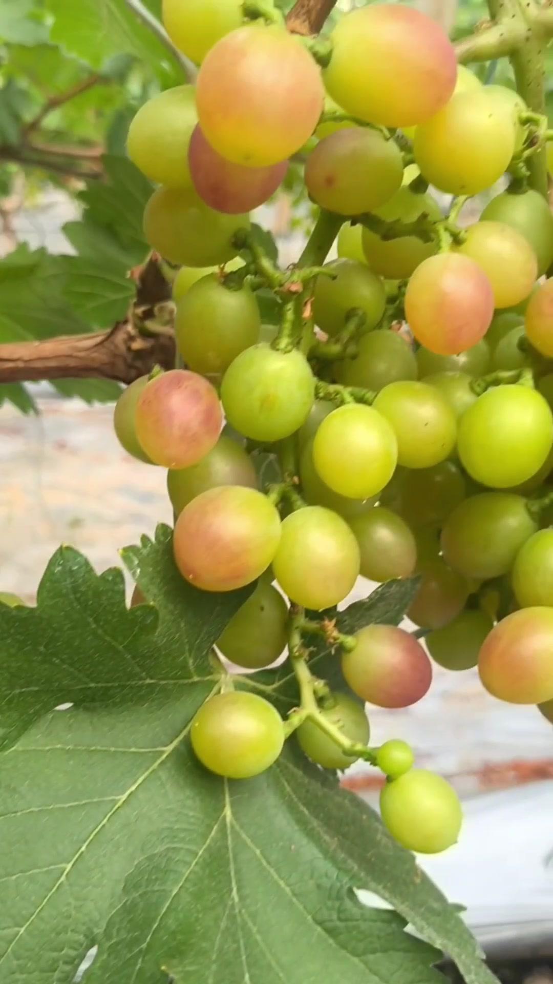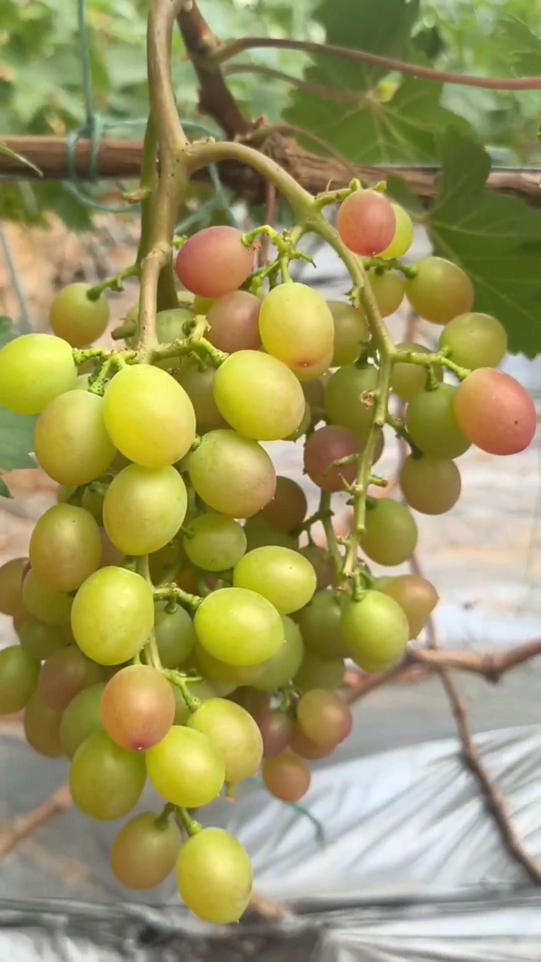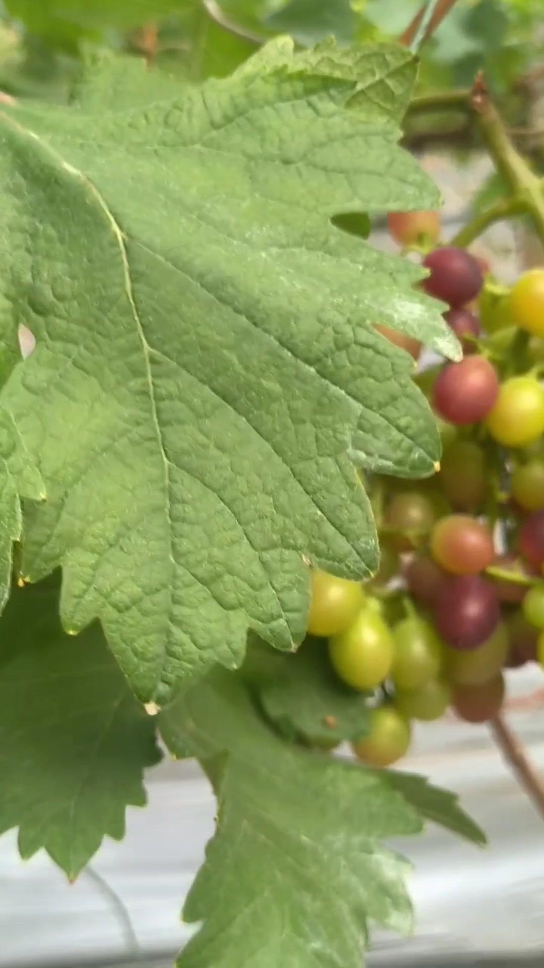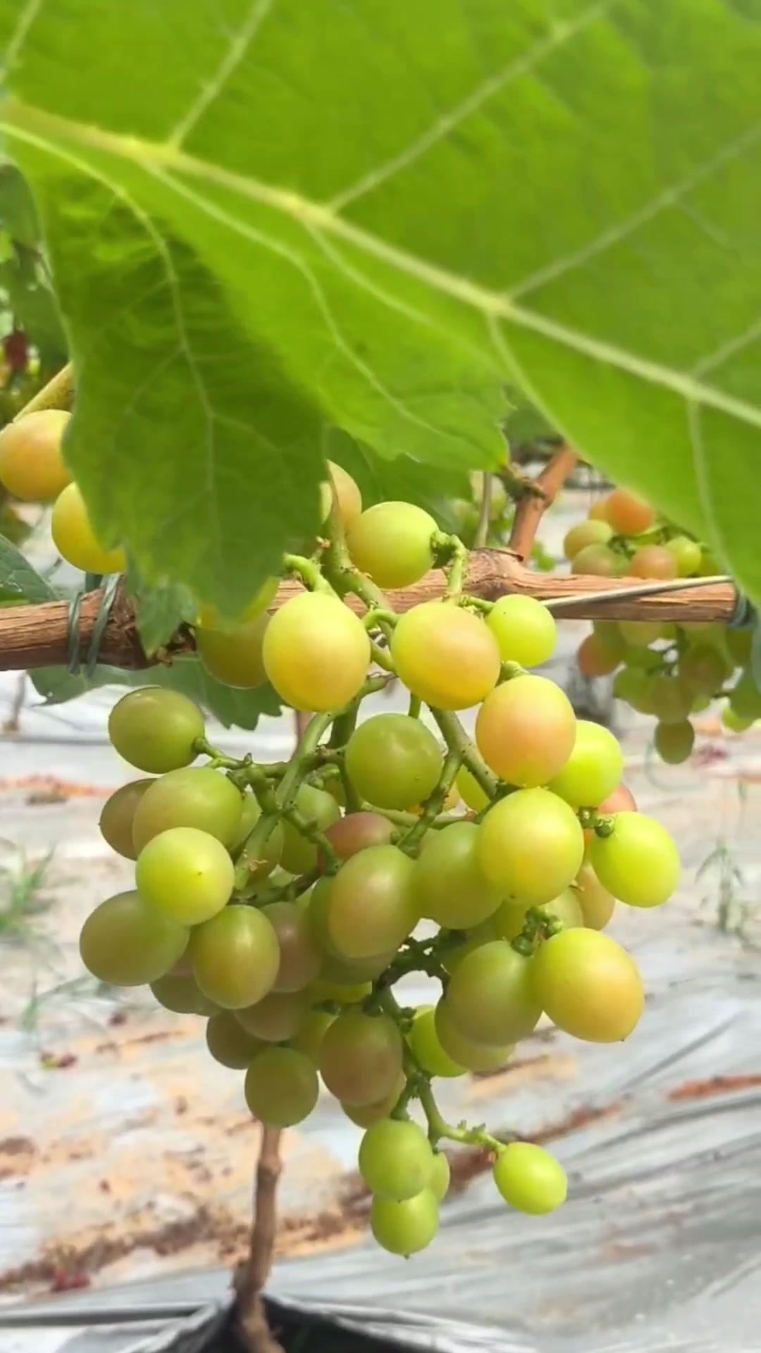 1️⃣去年4月栽种的春红三号葡萄,经过一年生长,今年终于迎来了春茬果。挂果时看着满枝翠绿,心里就盼着成熟的日子赶紧到~