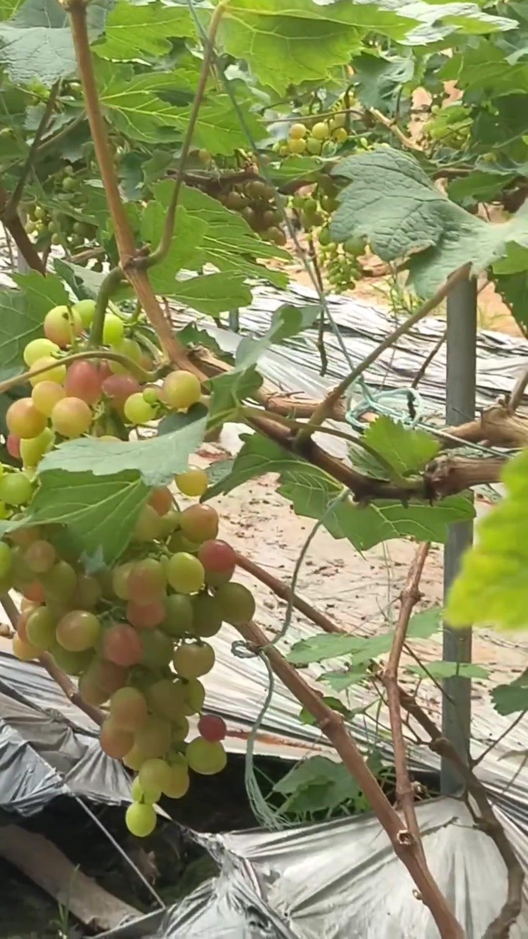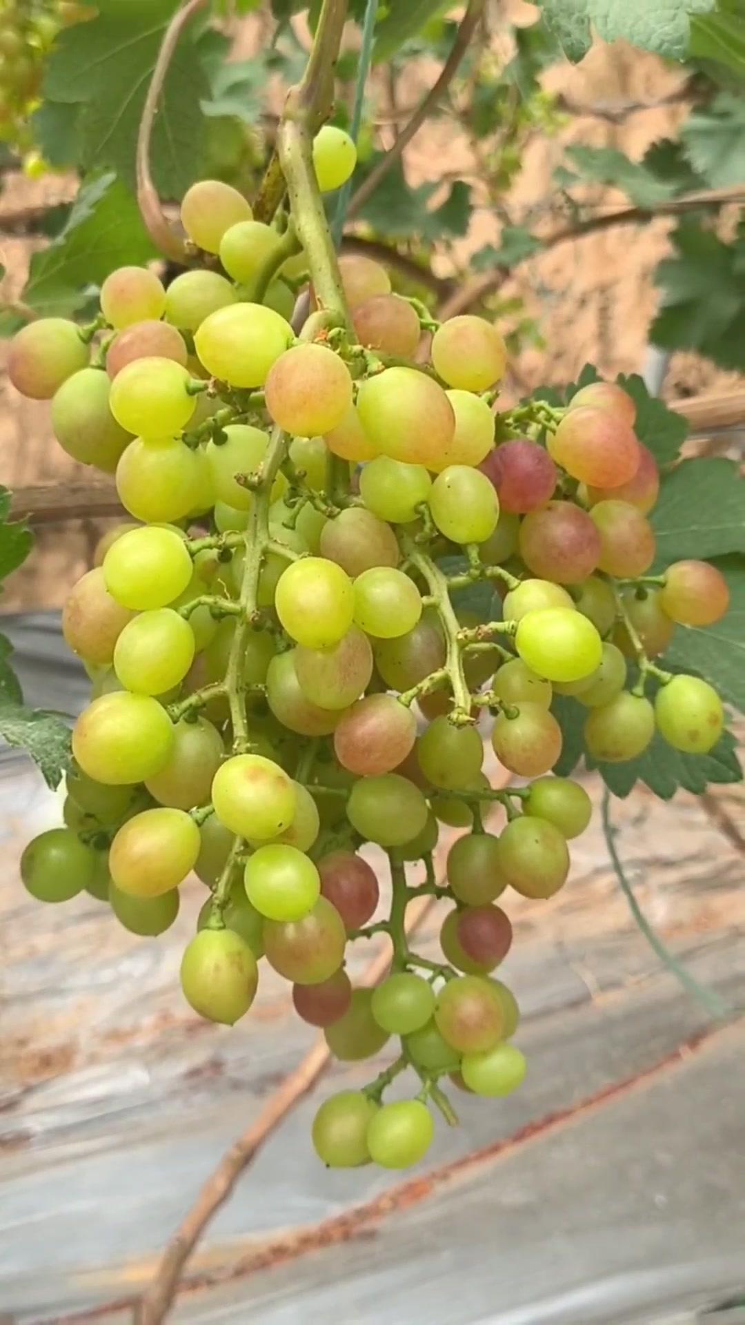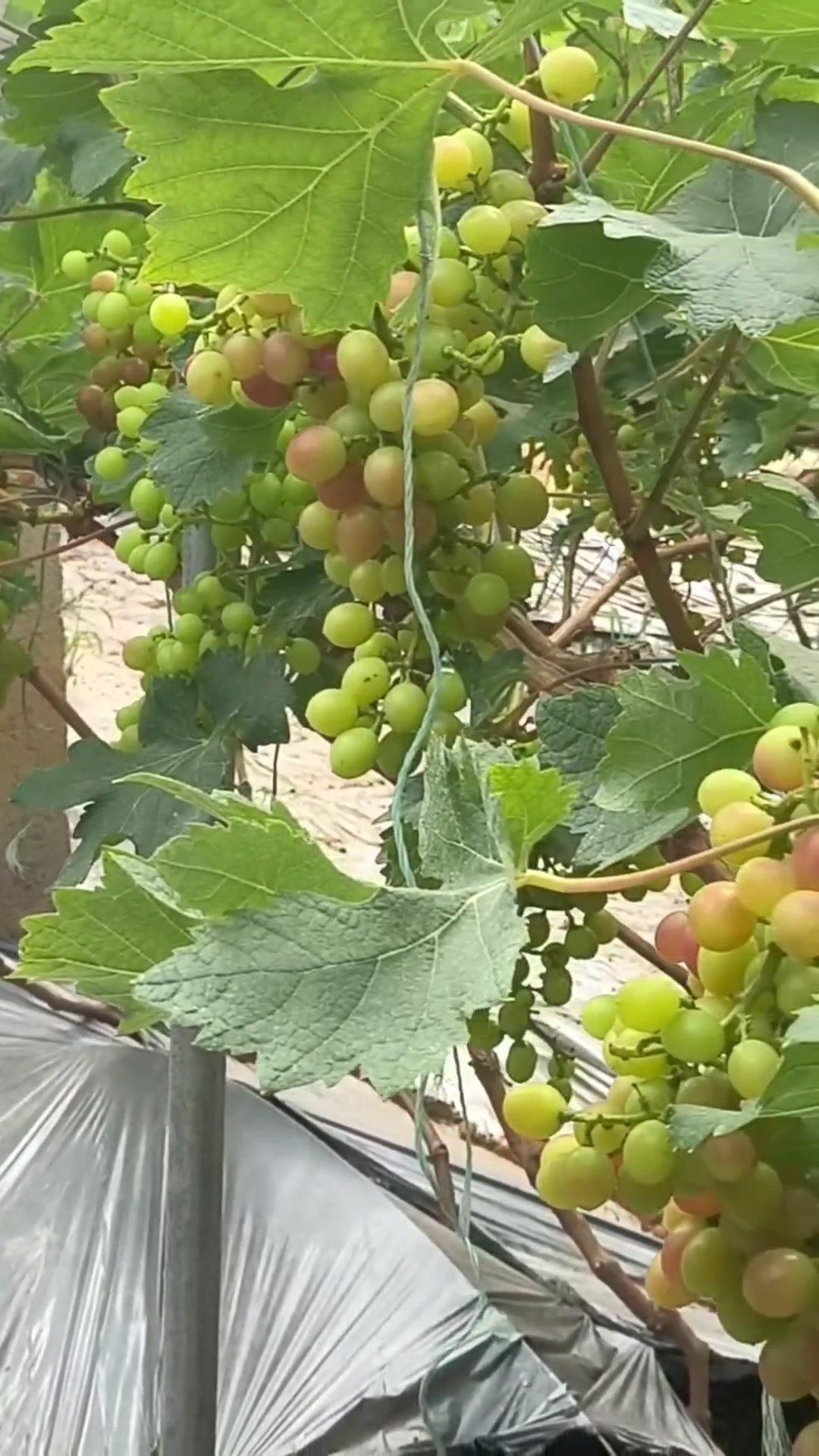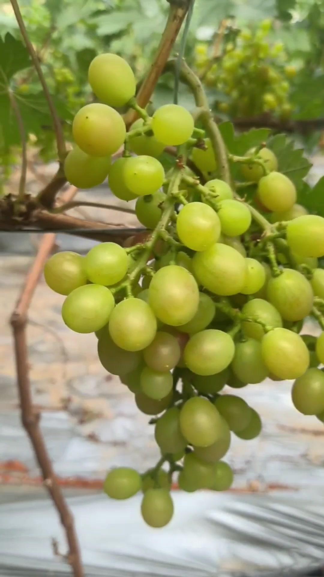 1️⃣去年4月栽种的春红三号葡萄,经过一年生长,今年终于迎来了春茬果。挂果时看着满枝翠绿,心里就盼着成熟的日子赶紧到~