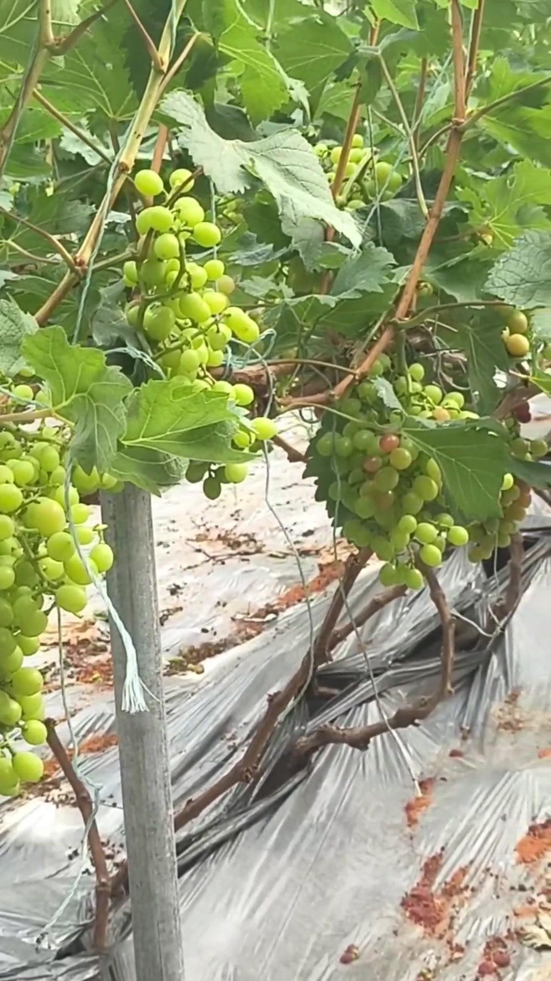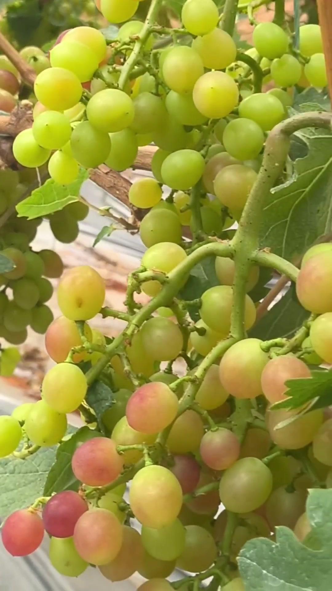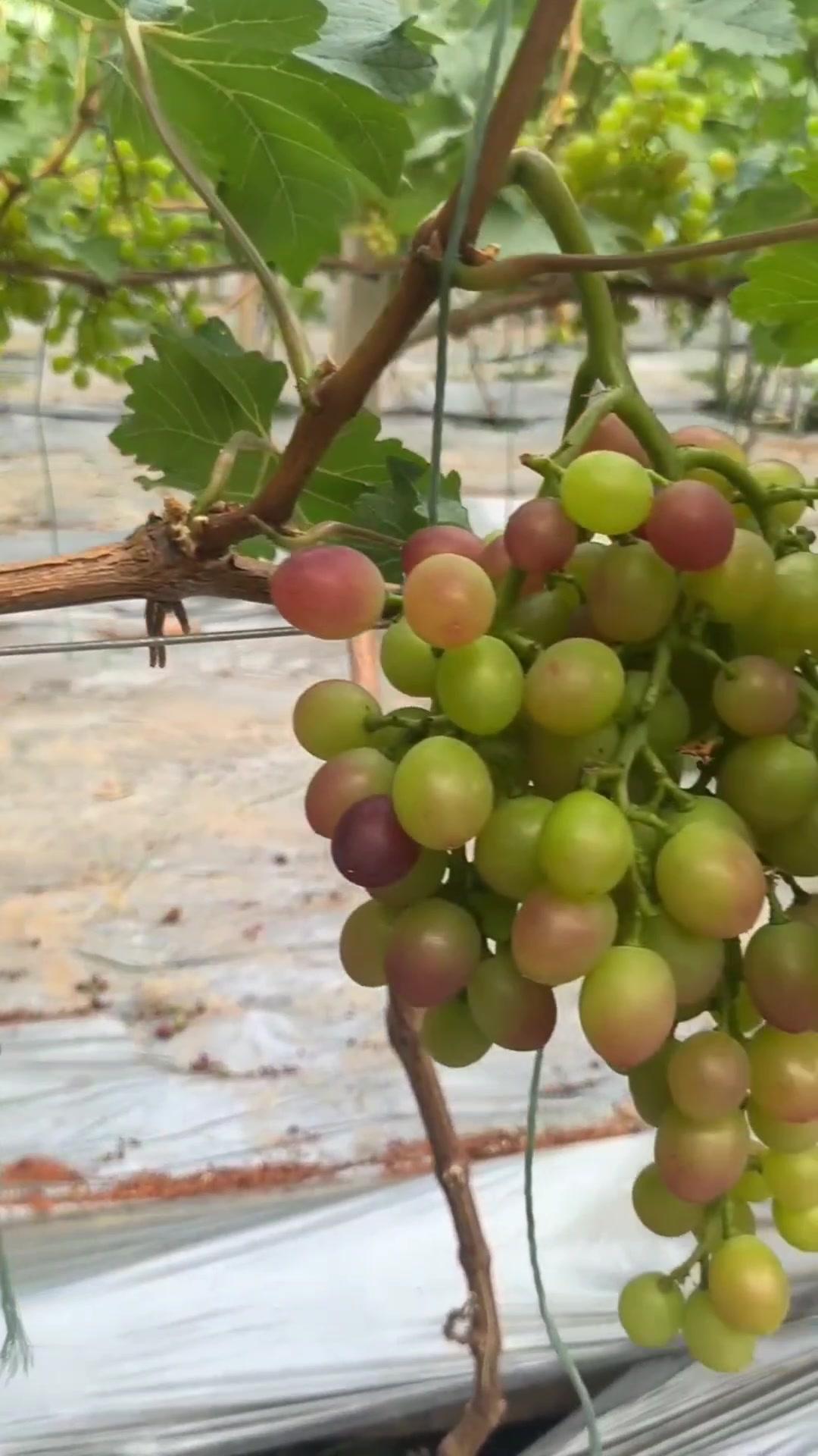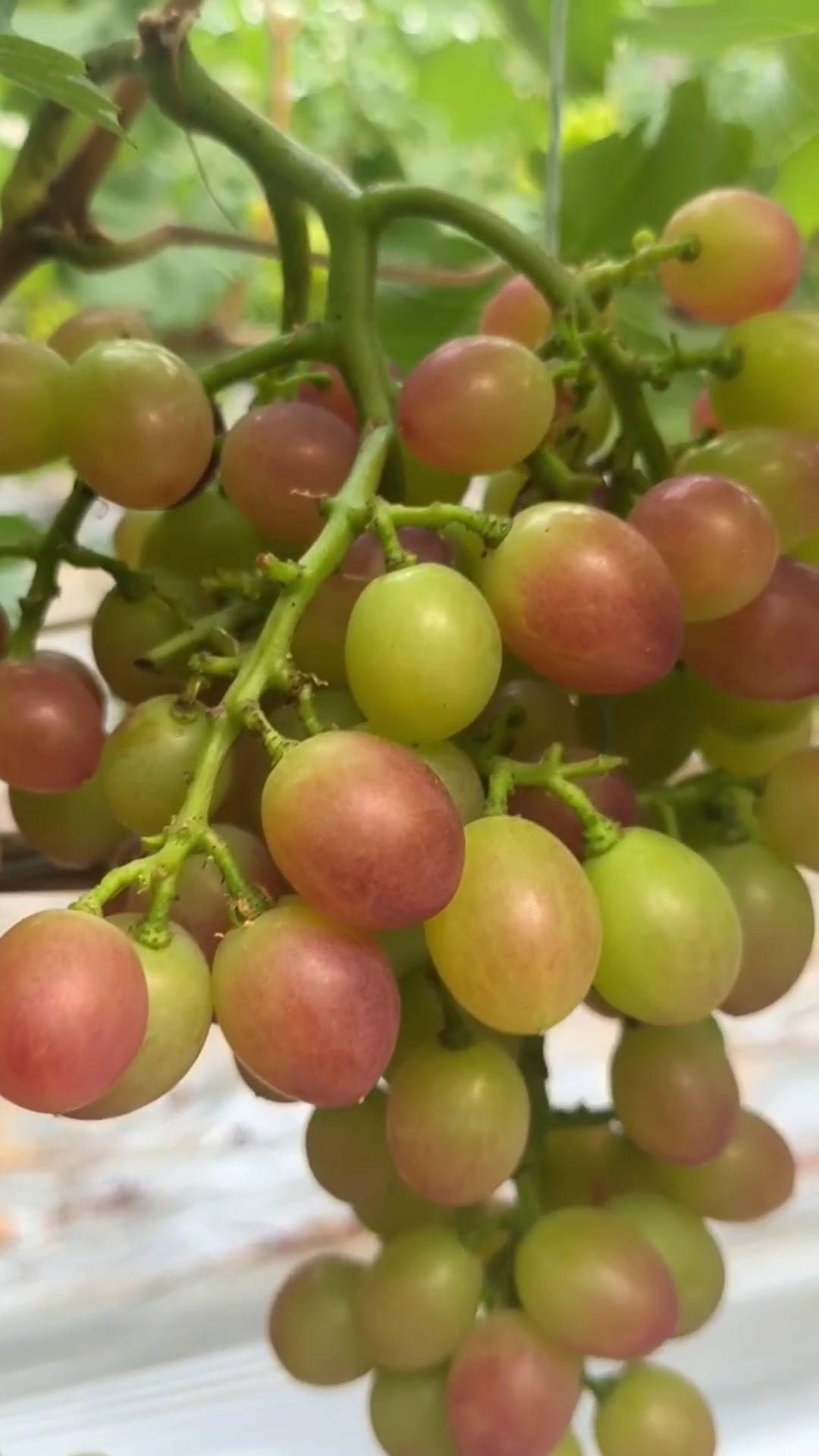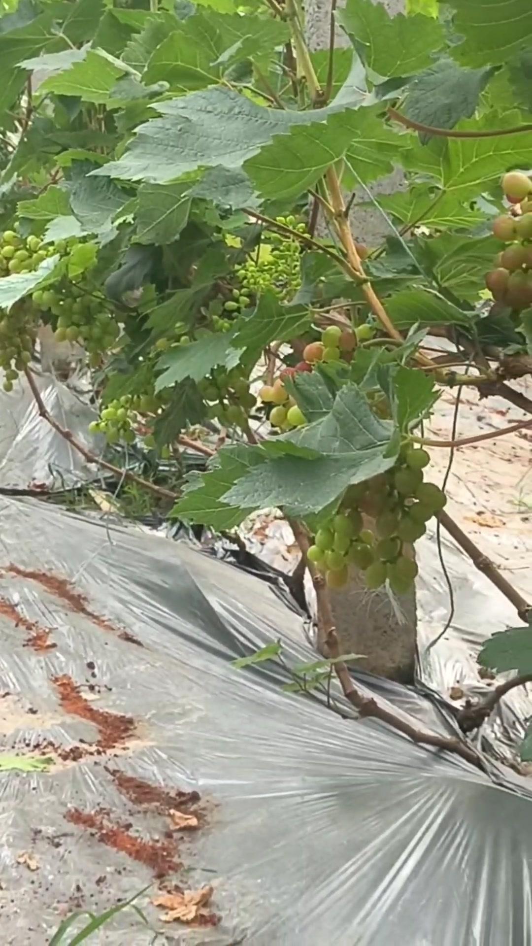 1️⃣去年4月栽种的春红三号葡萄,经过一年生长,今年终于迎来了春茬果。挂果时看着满枝翠绿,心里就盼着成熟的日子赶紧到~