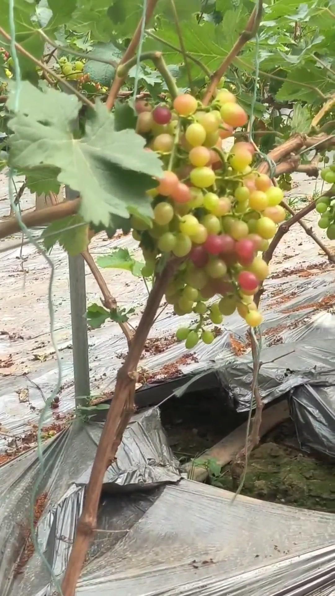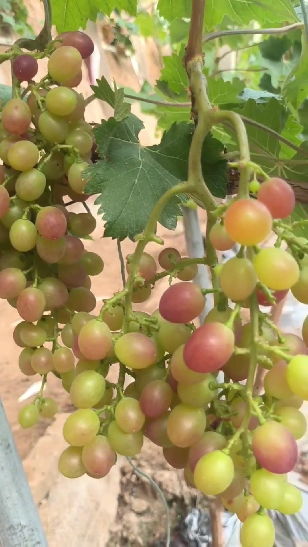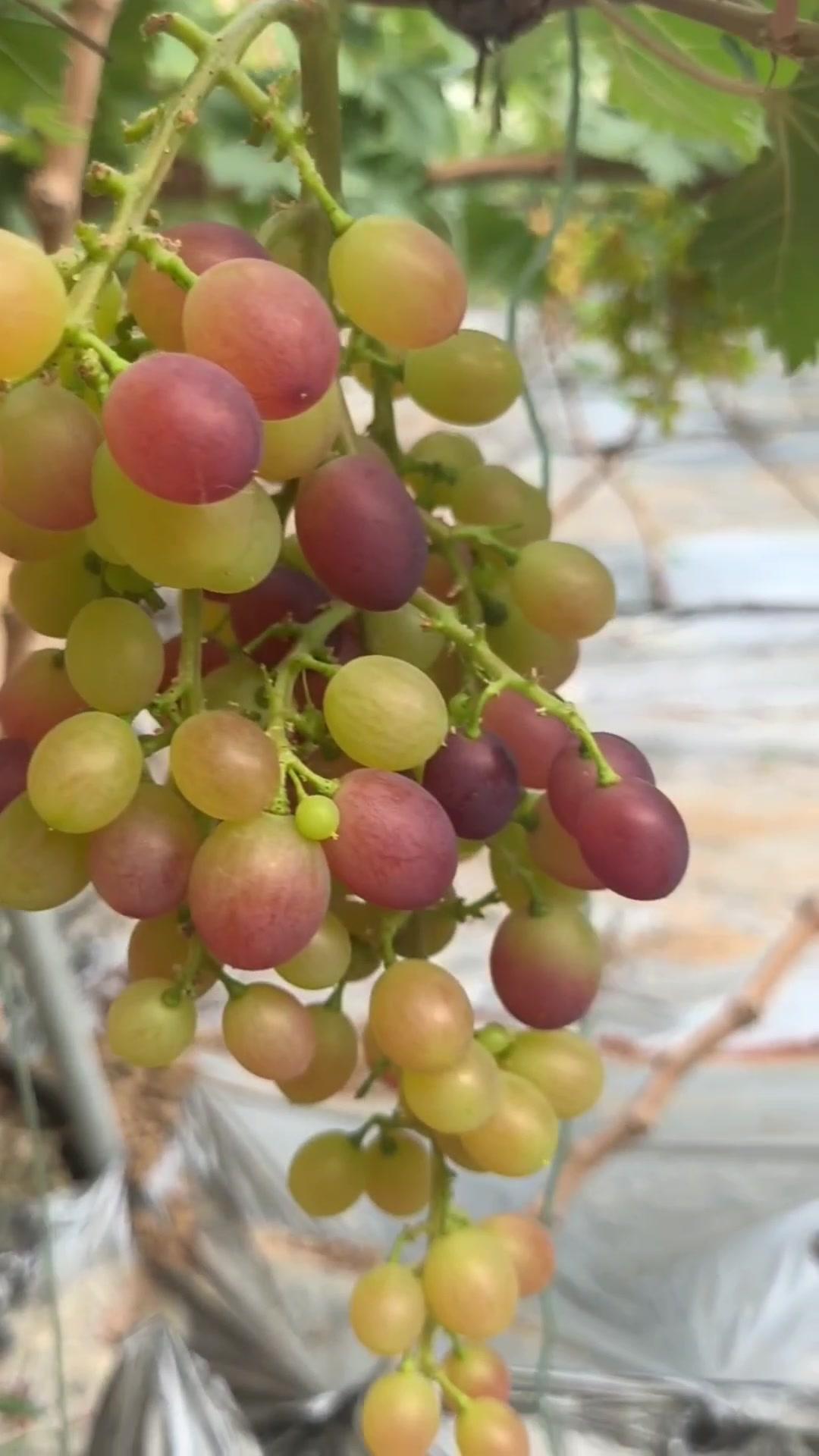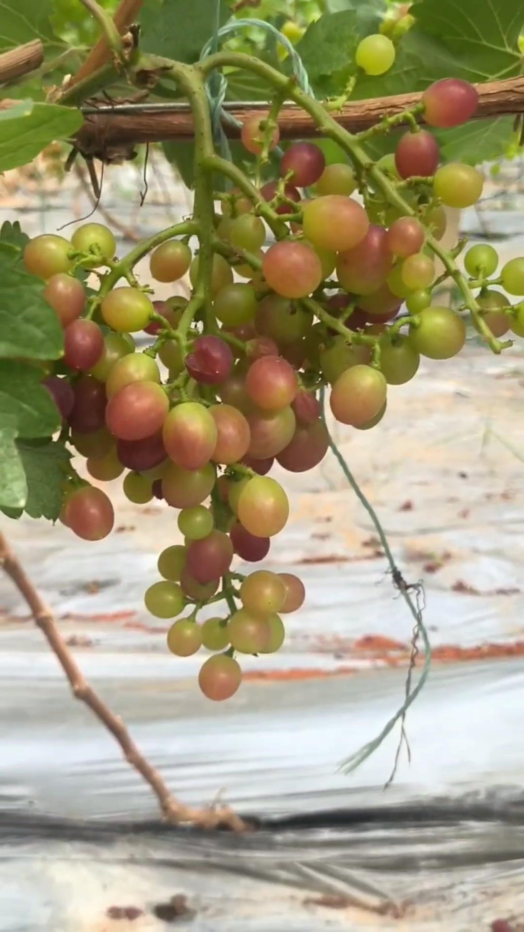 1️⃣去年4月栽种的春红三号葡萄,经过一年生长,今年终于迎来了春茬果。挂果时看着满枝翠绿,心里就盼着成熟的日子赶紧到~