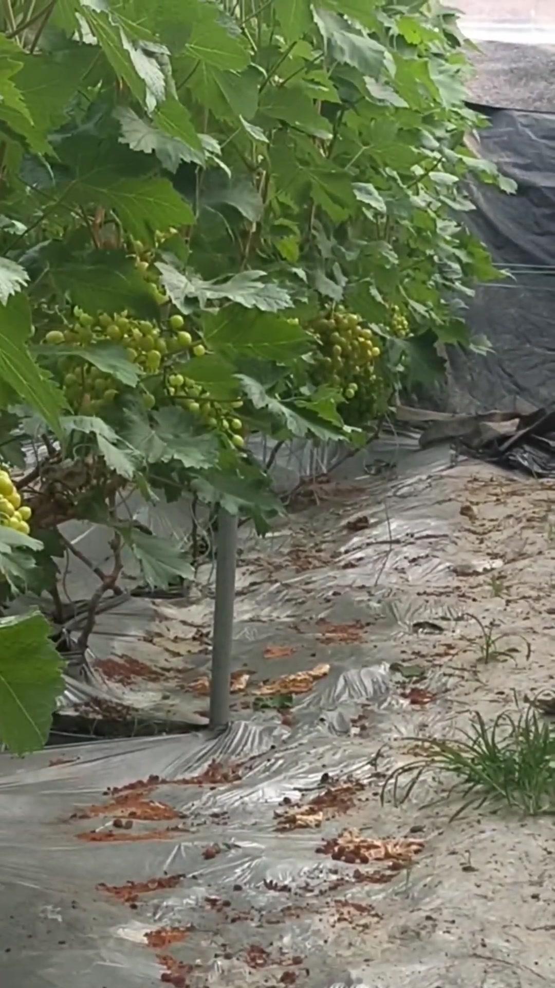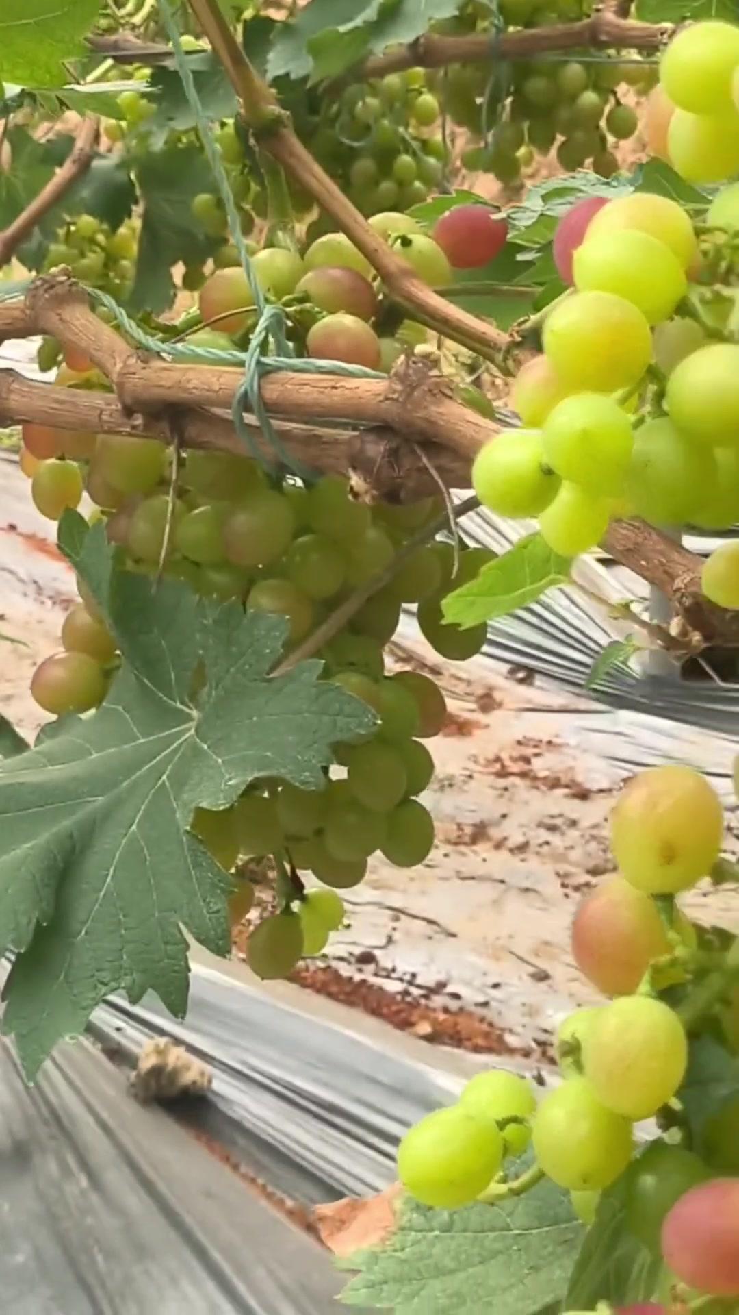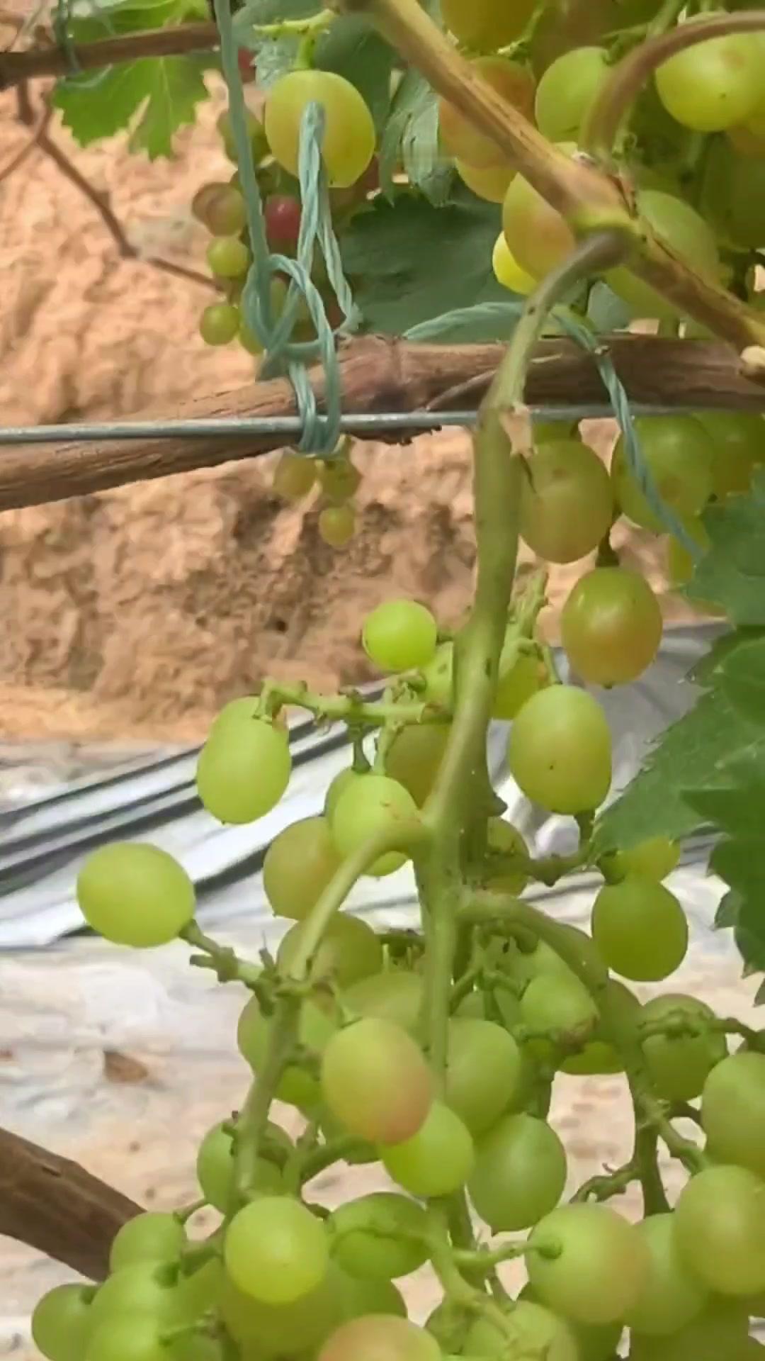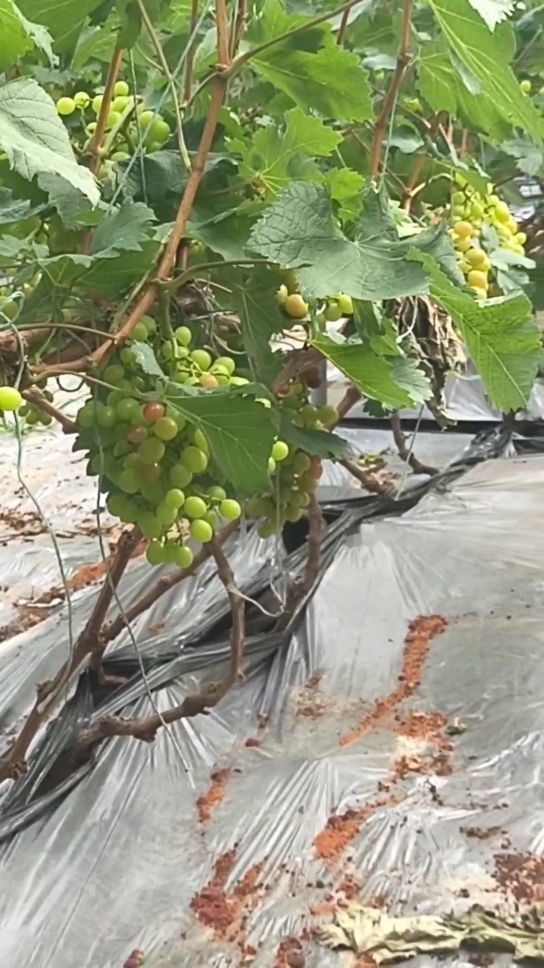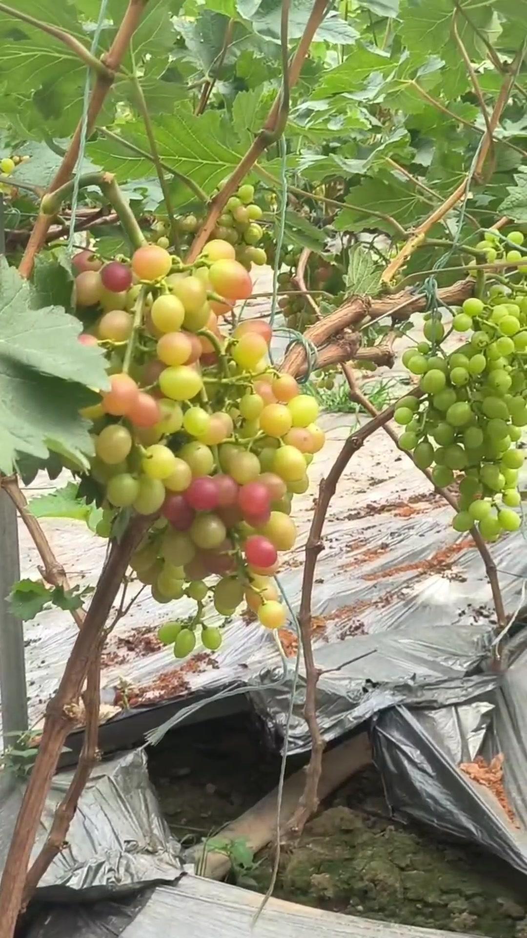 1️⃣去年4月栽种的春红三号葡萄,经过一年生长,今年终于迎来了春茬果。挂果时看着满枝翠绿,心里就盼着成熟的日子赶紧到~