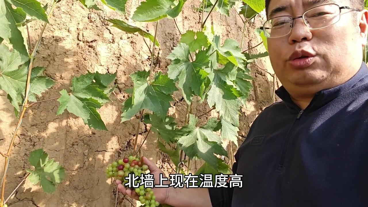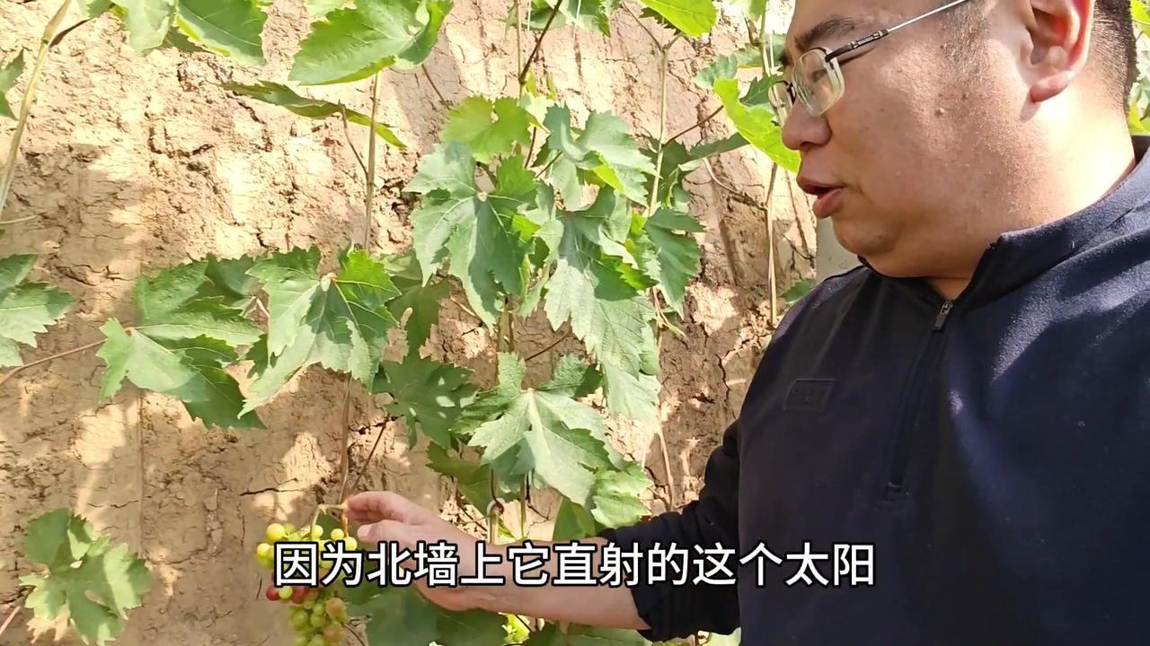 1️⃣光照与温度:北墙直射太阳,温度高转色速度快,得益于充足的光照,葡萄转色效果更好。