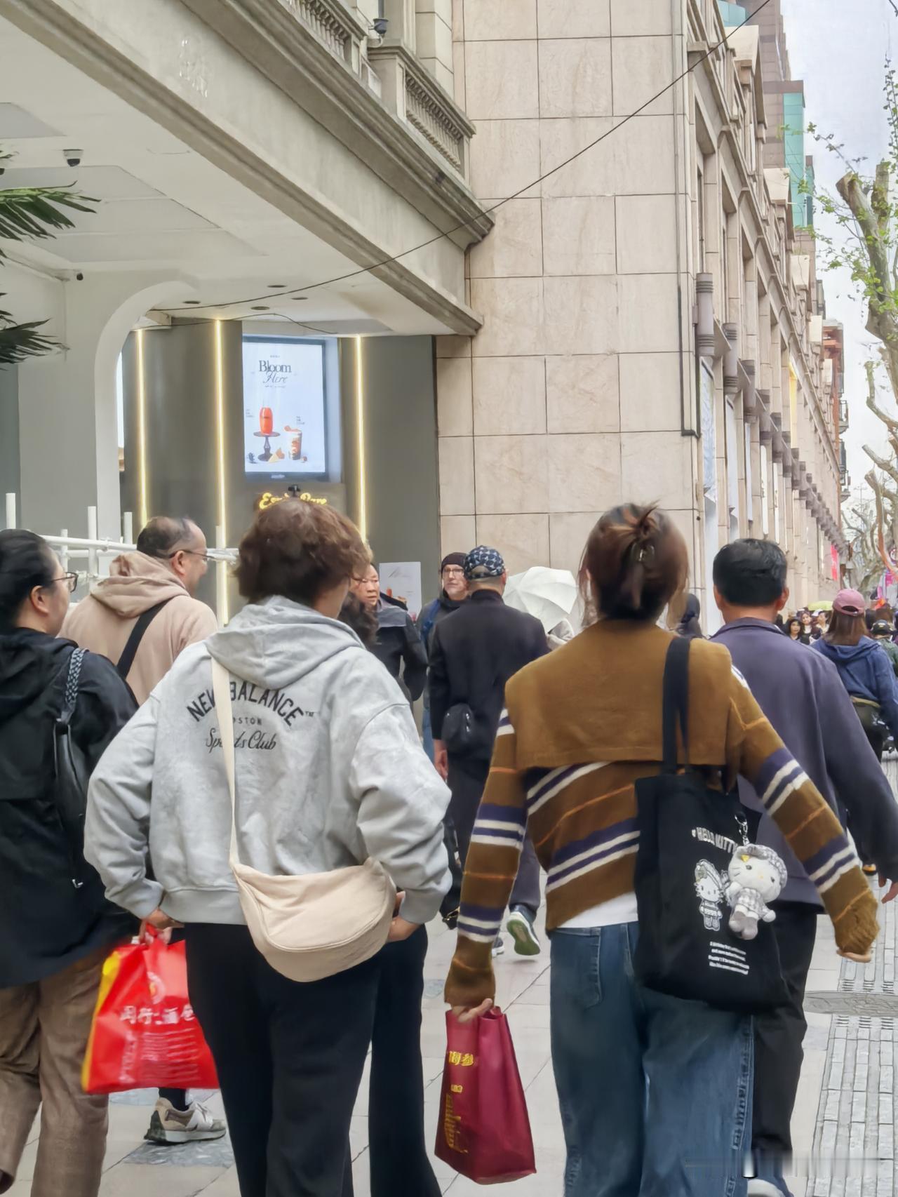 今天周末,淮海路瑞金二路口傍晚人流如织,年轻面孔显著增多,