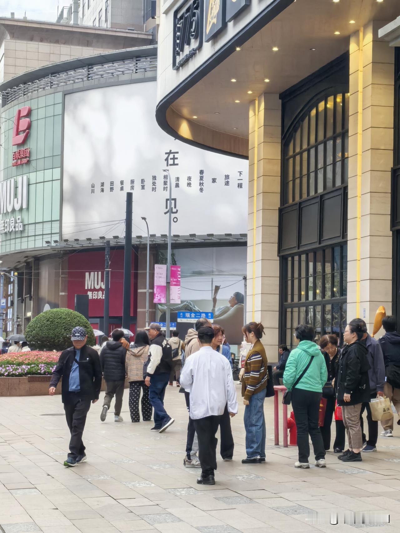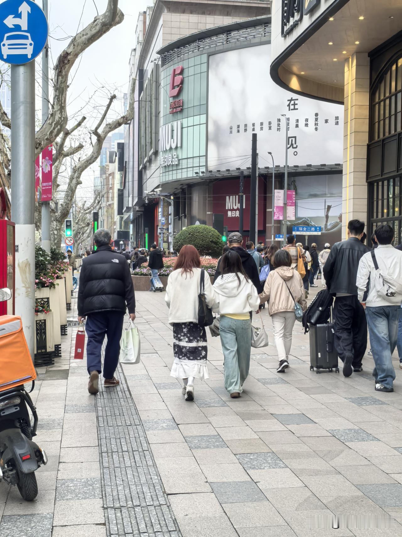 今天周末,淮海路瑞金二路口傍晚人流如织,年轻面孔显著增多, 折射出商业街改造的积