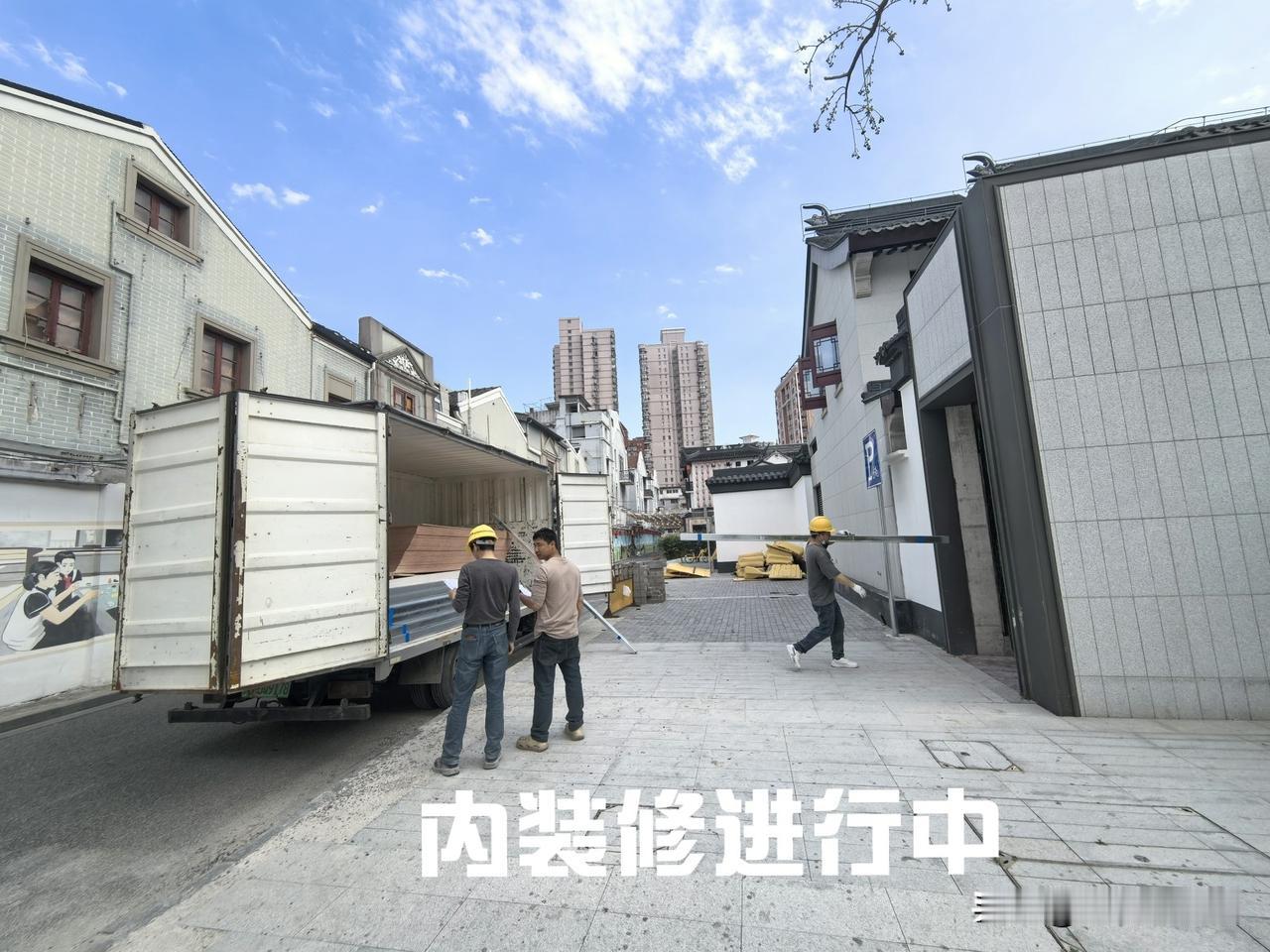 路过,见工人正从建材车上卸下胶合板类的板材,装修在进行中。