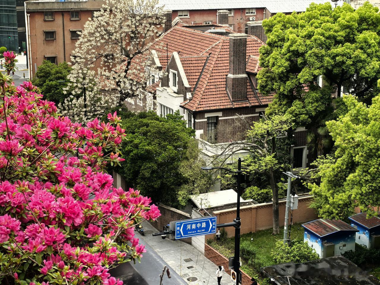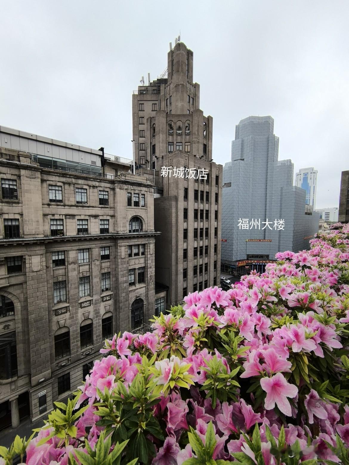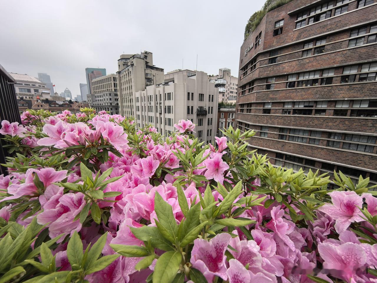 百年老市府5楼的杜鹃花开了! 今天,4月13日,春雨稍歇。 我登上老市府大楼