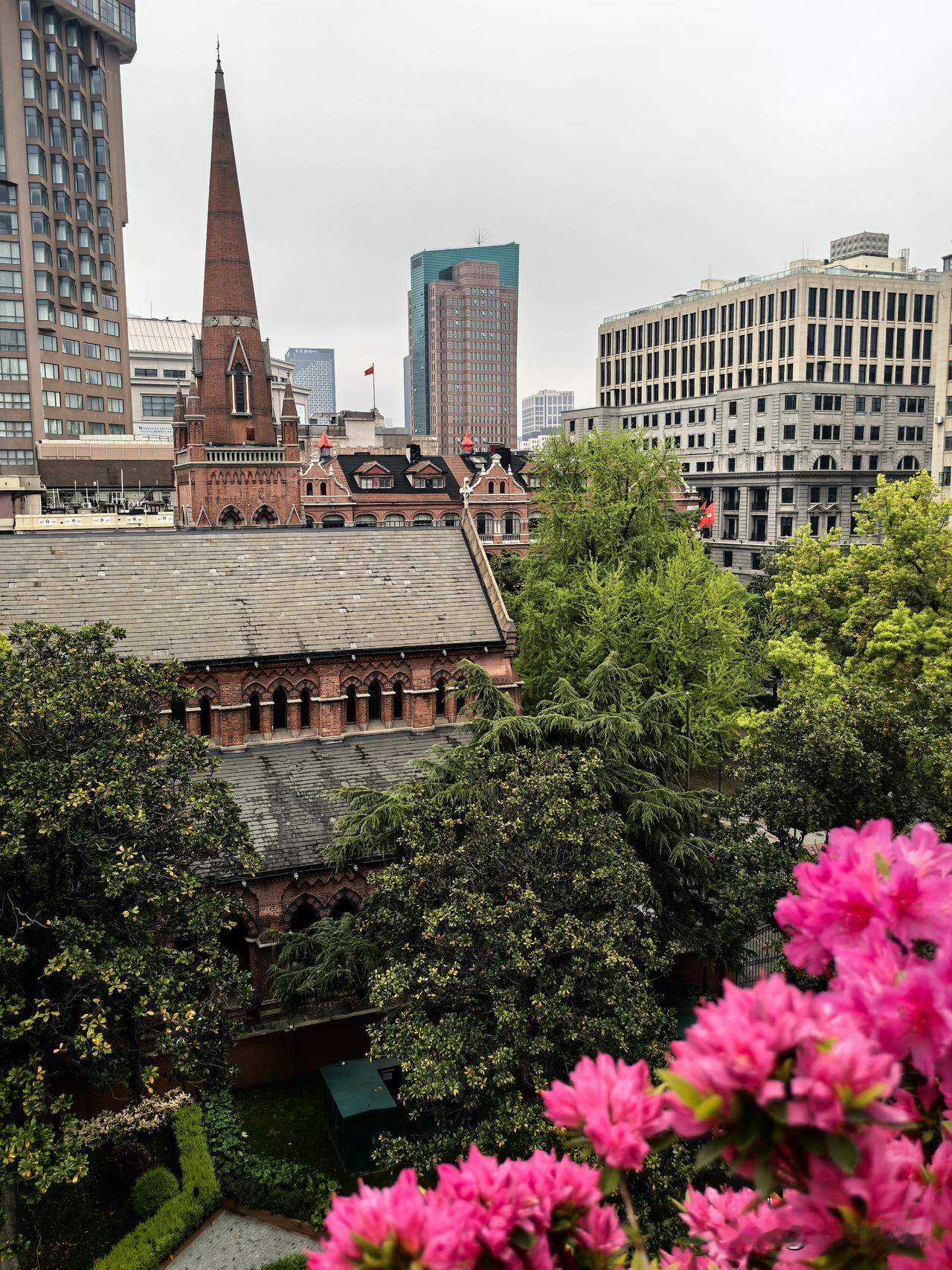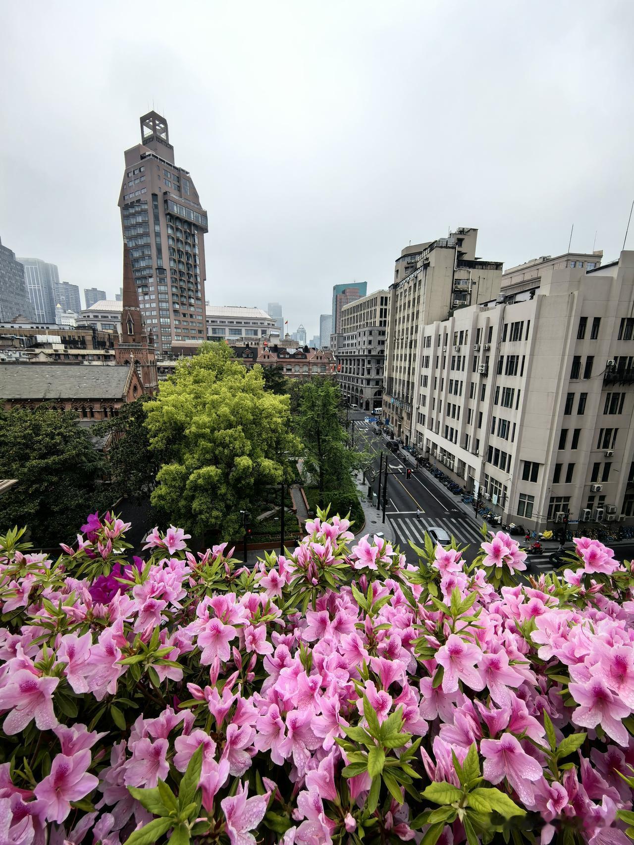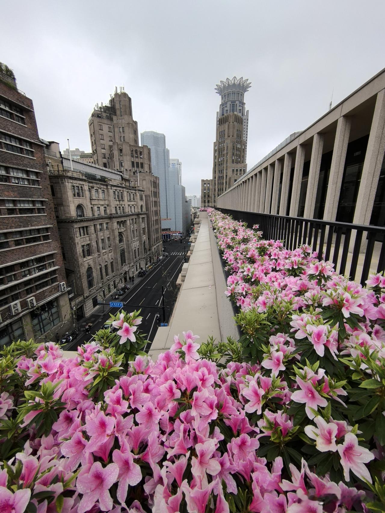 百年老市府5楼的杜鹃花开了! 今天,4月13日,春雨稍歇。 我登上老市府大楼