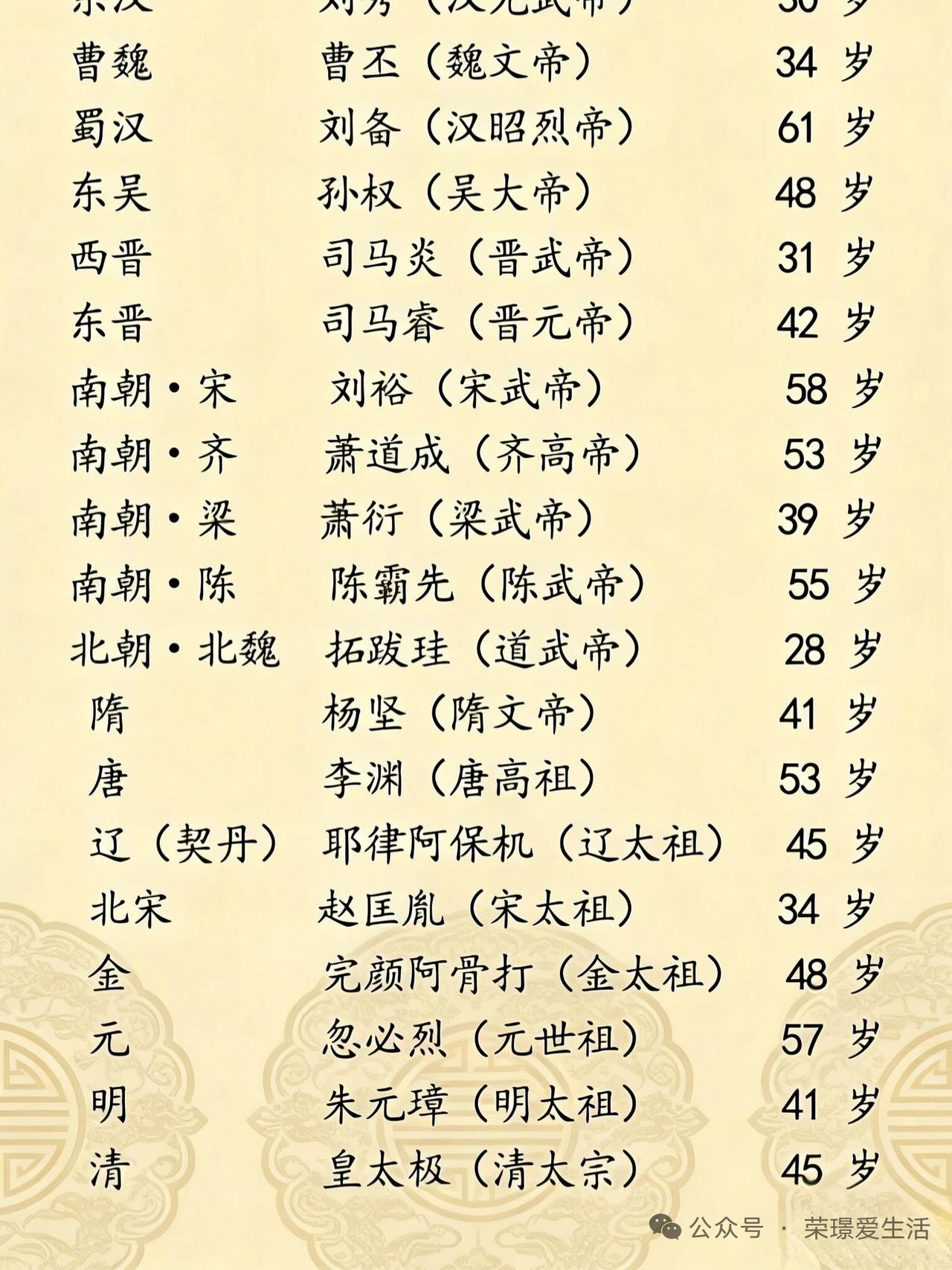 明太祖朱元璋出身平民,71岁去世,他从底层崛起,建立明朝,一生堪称传奇。这些开国皇帝在不同年龄开创帝业,各有各的精彩。