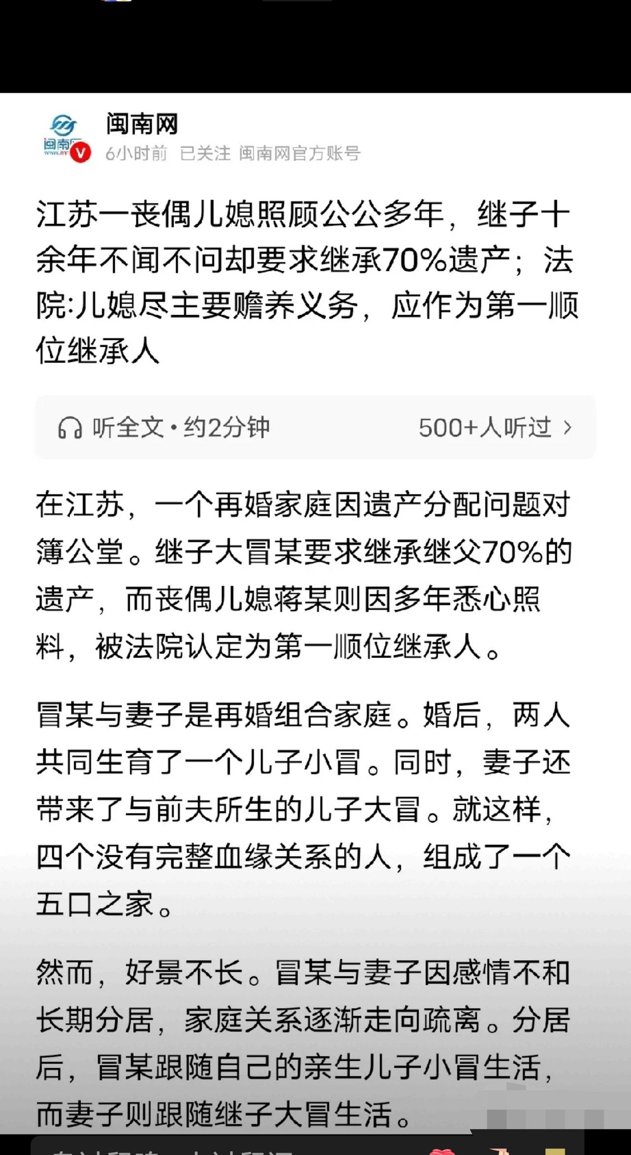 江苏,老人的小儿子去世后,儿媳和孙女一直照顾他8年,老人去世后,10多年不和他来往的继子跳出来要继承70%遗产,还把儿媳、孙女告上法院,法院作出公正判决。