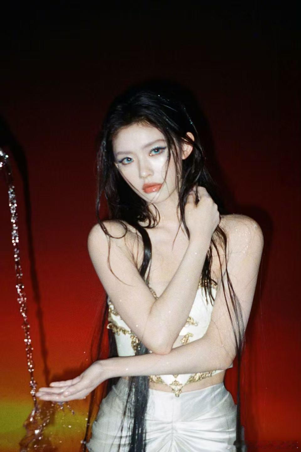 林允湿发半裸造型林允湿发半裸造型 林允全新造型美到失语!神秘蓝瞳搭配慵懒湿发,身