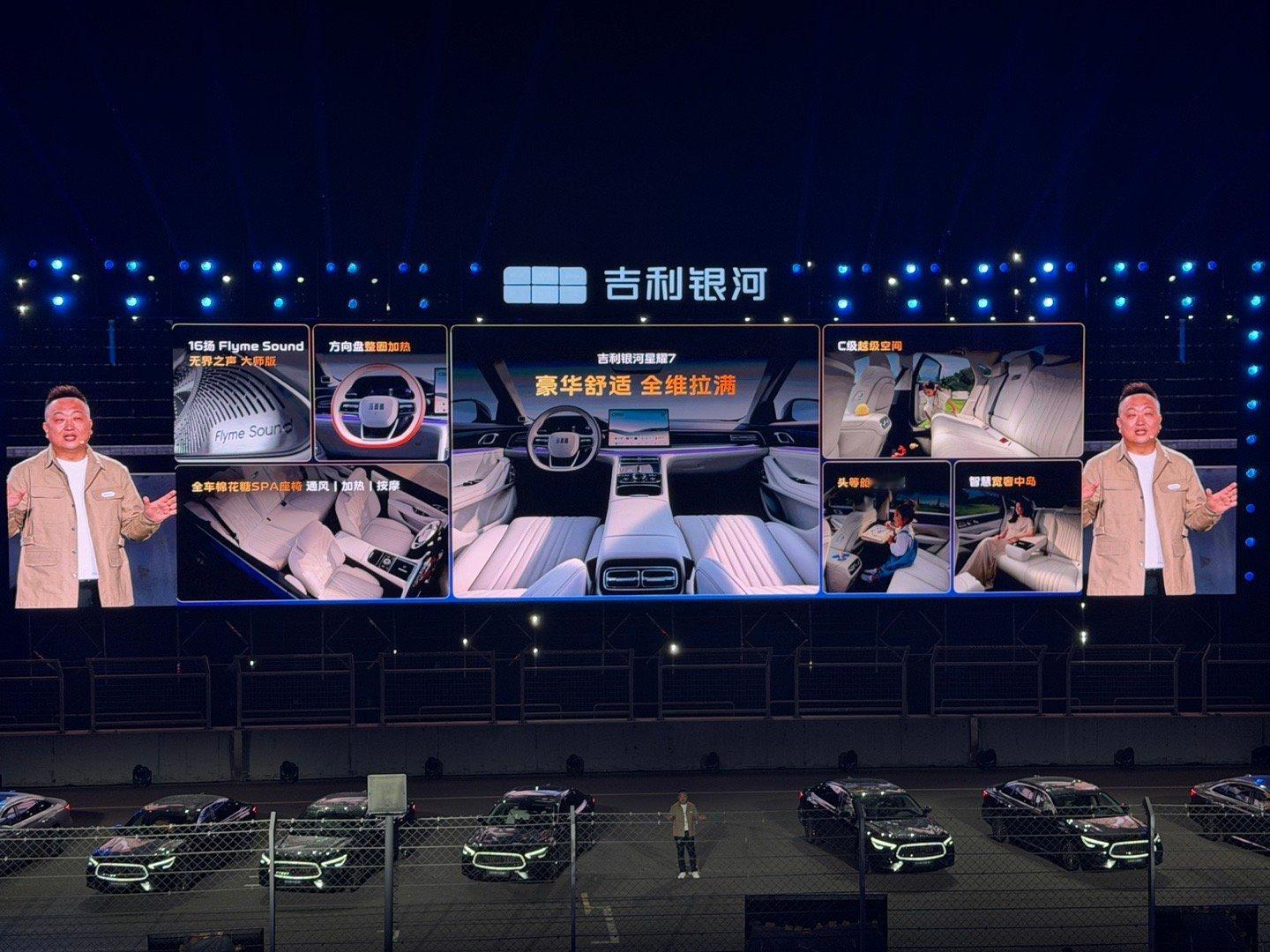 车内更是星耀系列传统的招牌,家用和豪华平衡得恰到好处,接近5米的车长,空间宽敞,5.4㎡软包包裹,触感超舒服。全车座椅通风、加热、按摩,还有头等舱小桌板,办公、带娃都方便。双层夹胶玻璃加持,NVH表现也可以期待一下,琉璃蓝高定车漆加持,质感这一块更是不用担心!安全这一块也是把吉利的看家本领上了个遍,爆胎稳行、神盾电池、主动紧急避让,满满当当,一个不少!