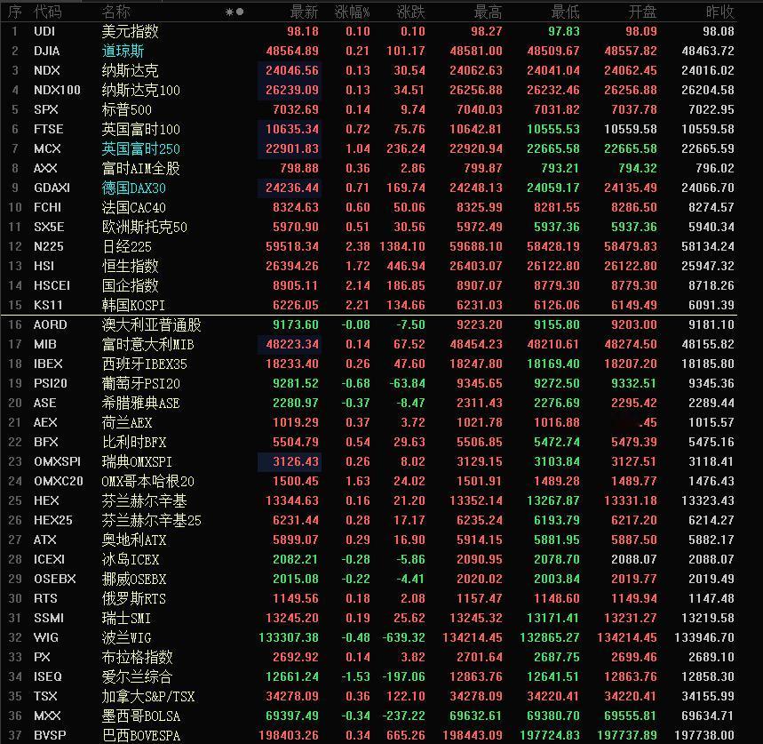 昨天夜盘和今天白天,全球股指各种创新高。