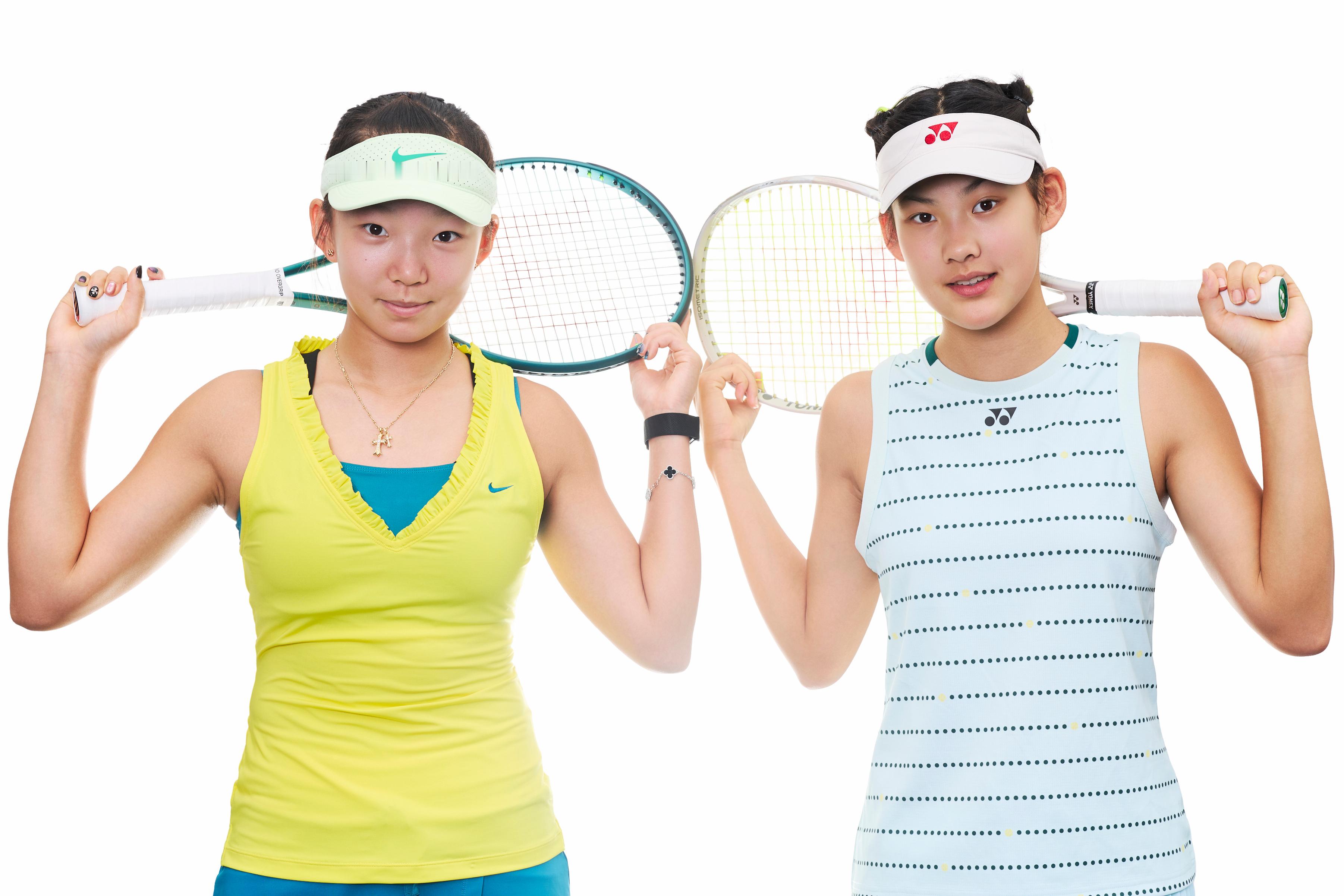 豆蔻年华!中国网球美少女杨若涵(14岁)和赵若茗(14岁)美丽合影。摄影:记者