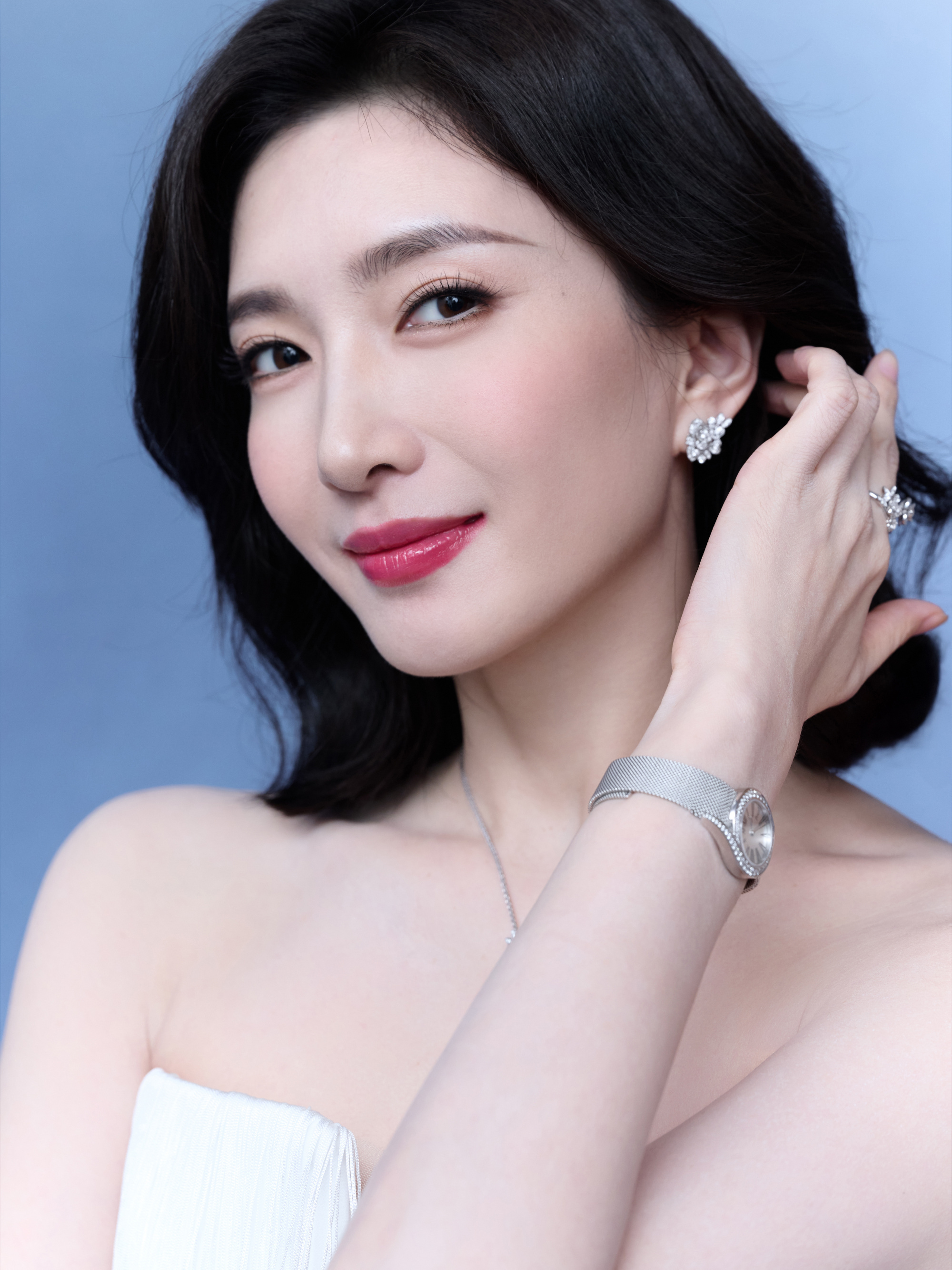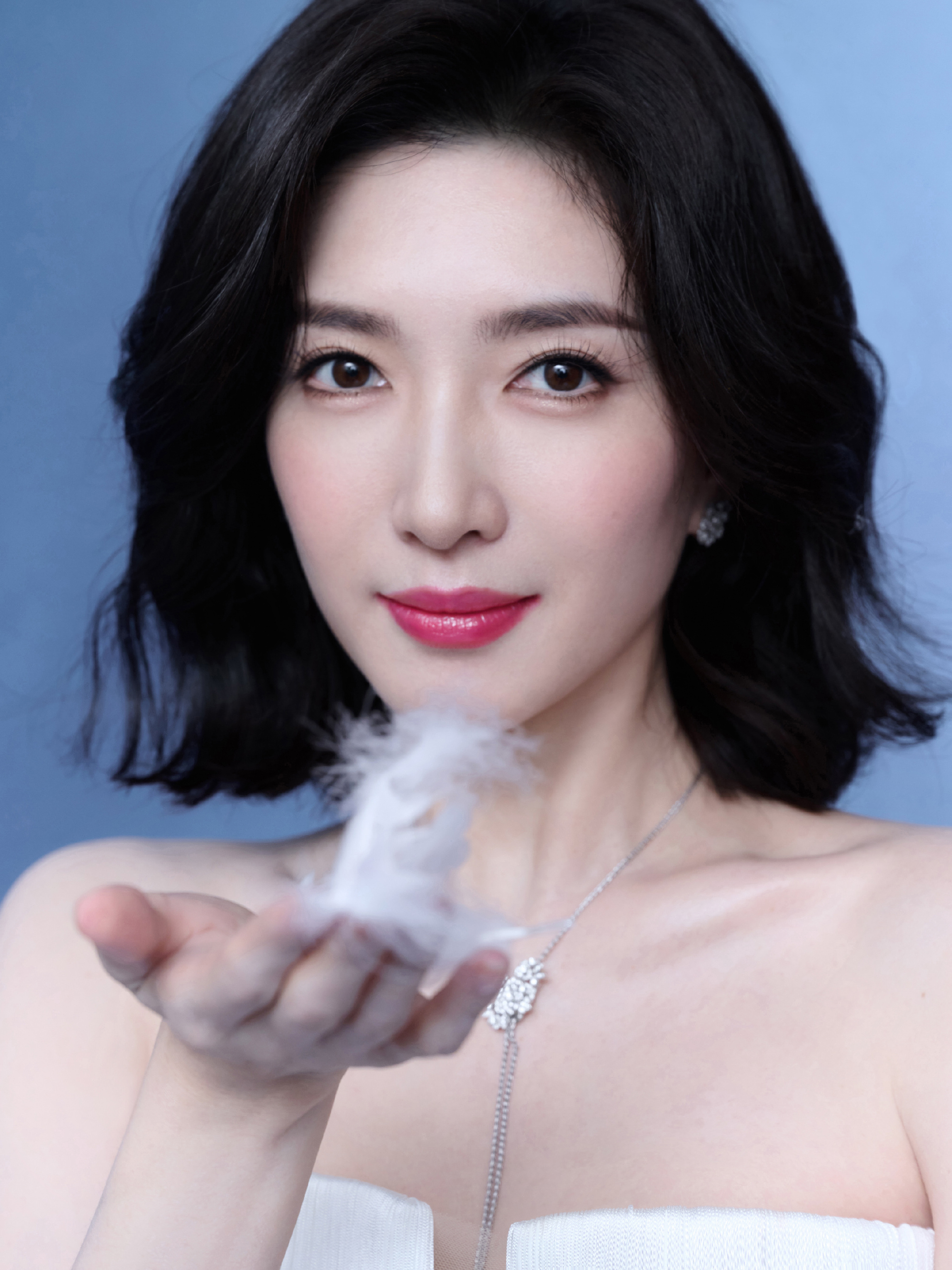 卢昱晓×TATA直播造型Look,一袭纯白抹胸裙装出镜,亭亭玉立,简约纯