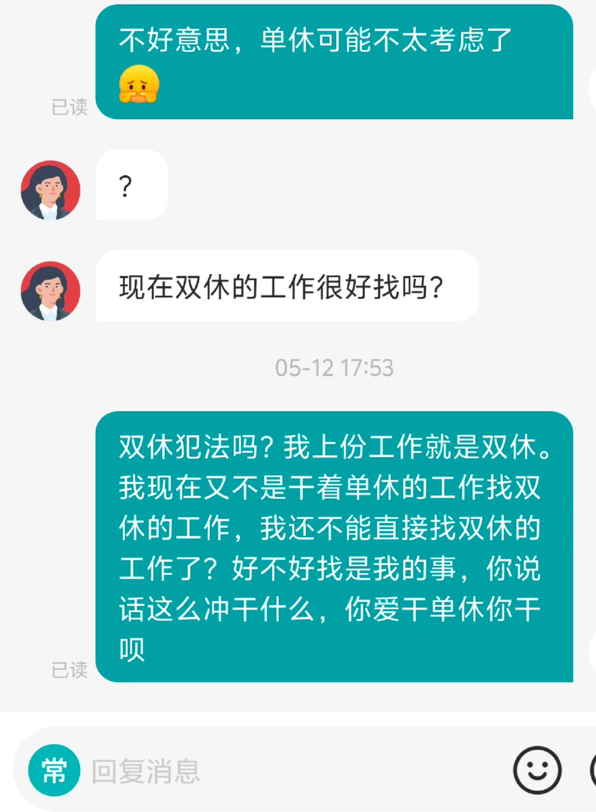 我上一份工作就是双休。