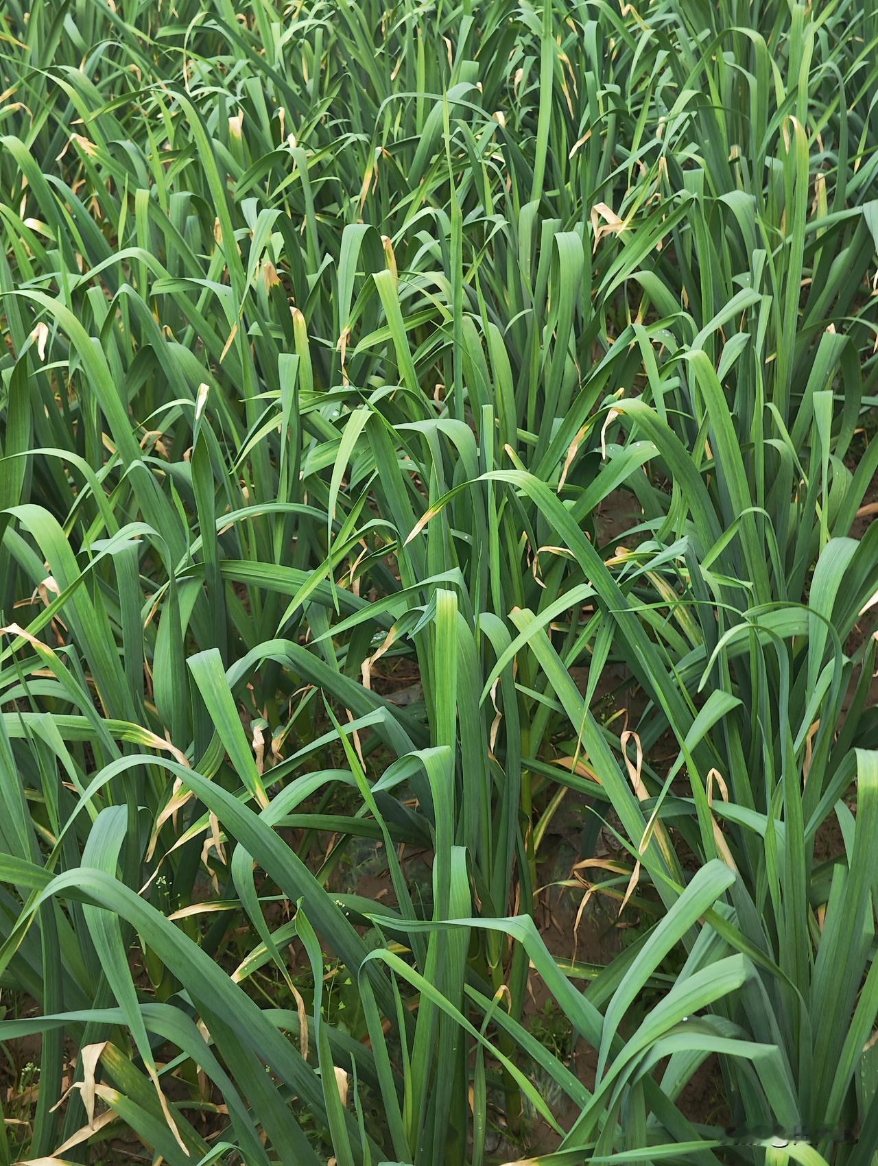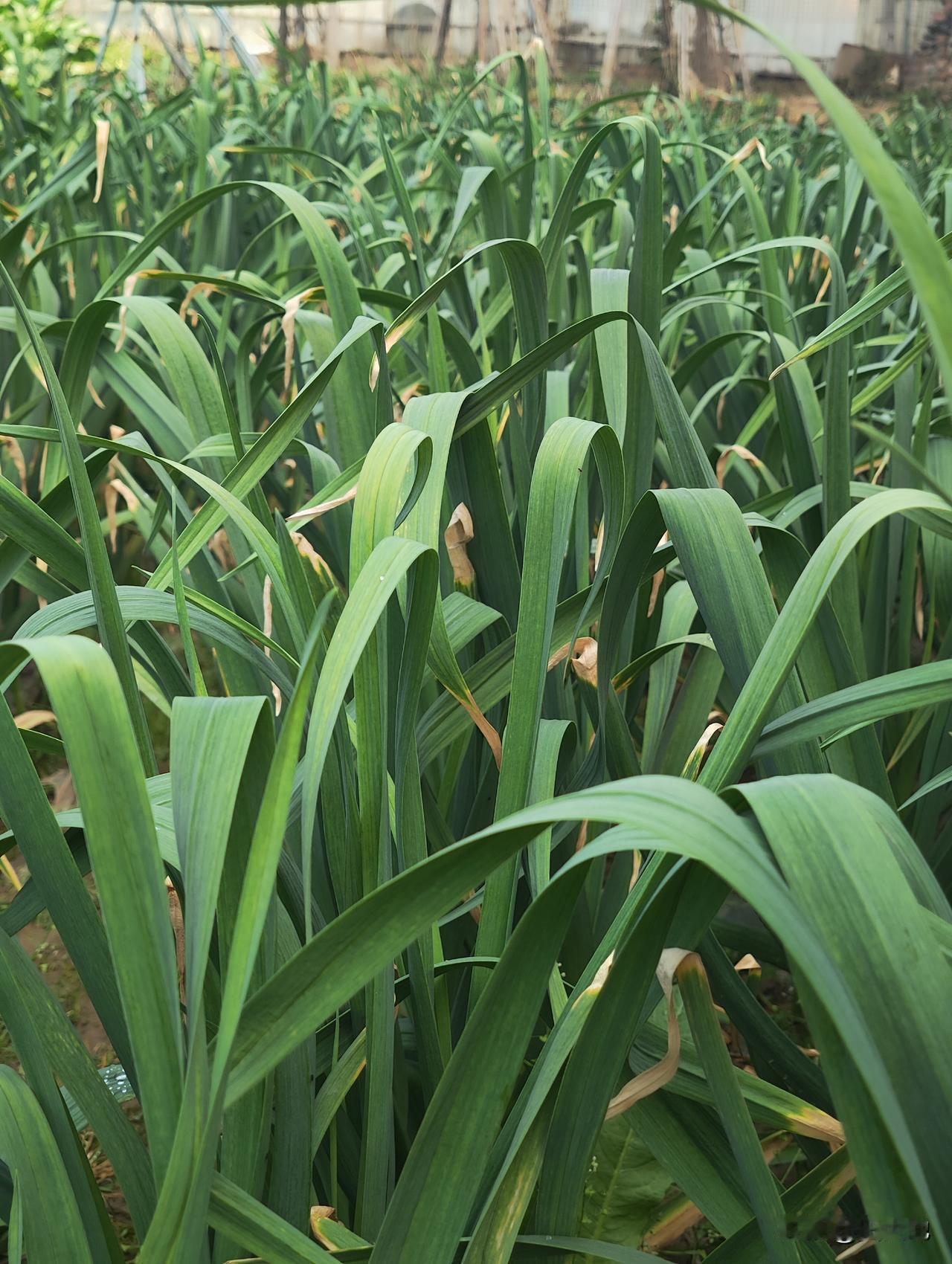 雨后及时给蒜苗补充营养,充施了发酵香油渣水,0.2%磷酸二氢钾+低浓度白醋+红糖稀释液。由于水肥充足,大蒜苗绿油油生长旺盛,大蒜棵粗壮良好。