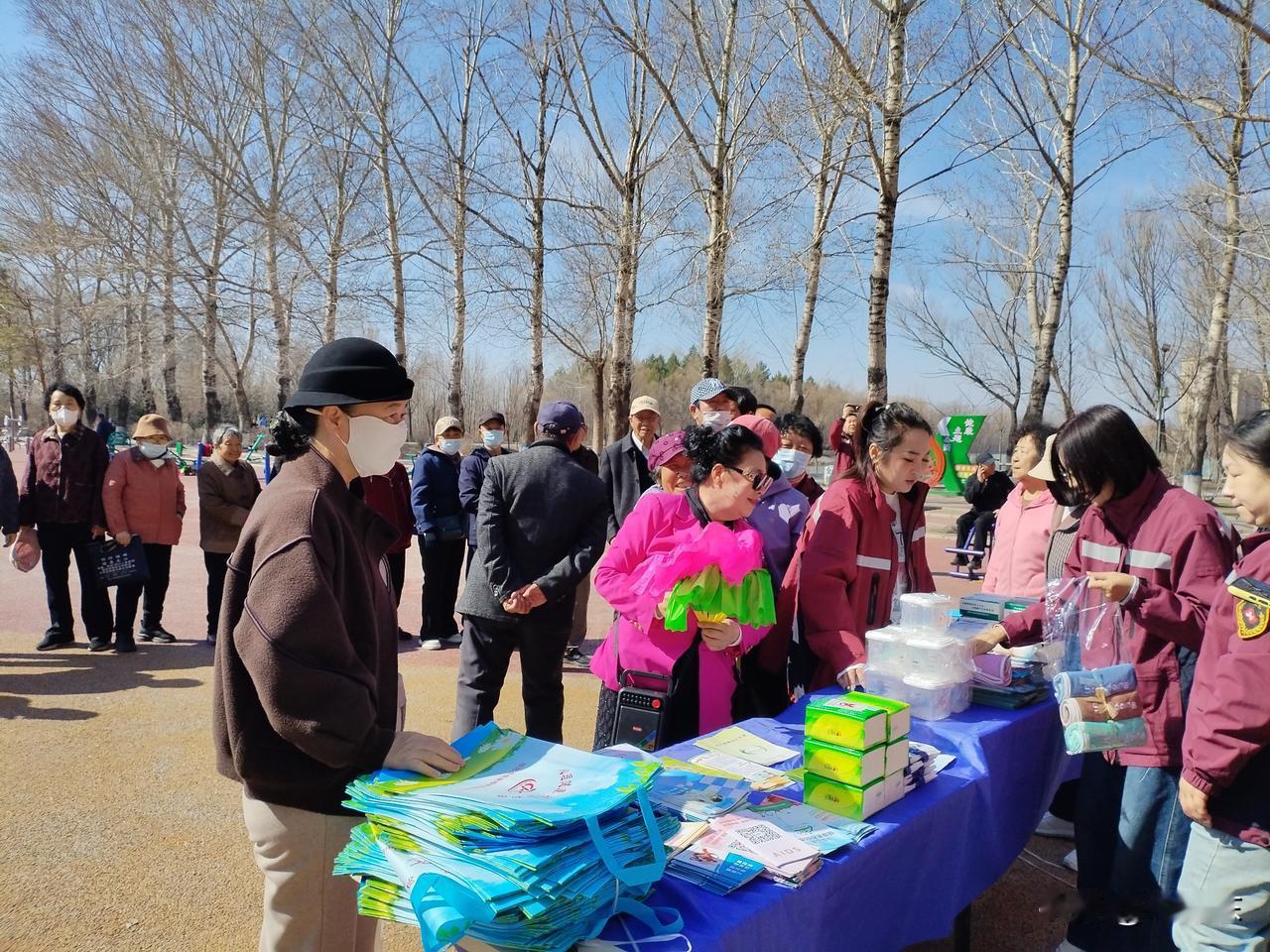 阳光艳丽,春风习习。相关部门的工作人员,正在积极地向群众宣传健康卫生运动知识。