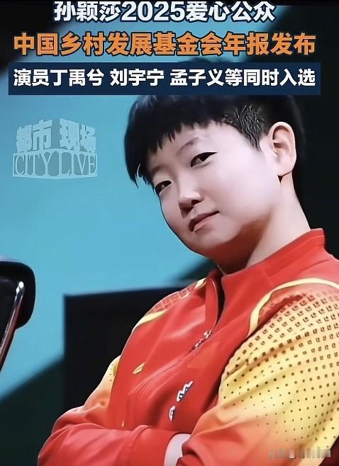 4月15日中国乡村发展基金会的年报发布,公布为乡村振兴做出贡献的人,孙颖莎、丁蜀兮、刘宇宁、王星越、王子奇、孟子义上榜。