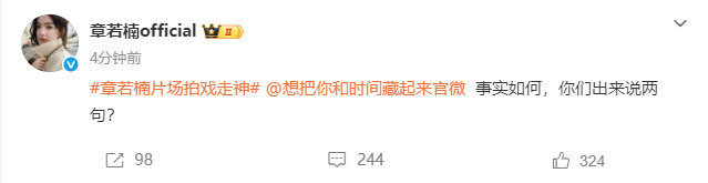 章若楠工作室回应拍戏走神了,现场有粉丝喊章若楠?章若楠片场拍戏走神