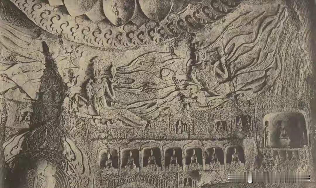 美帝国主义文化侵略代理人勾结旧中国内奸盗凿洛阳龙门石窟佛像,不亚于英法列强火烧北京圆明园掠夺文物的刺骨伤害。然而,当年美国总统罗斯福的堂侄女婿、哈佛大学教授,曾来到中国甘肃盗割敦煌唐代壁画的华尔纳在拼凑好中国浮雕《皇帝礼佛图》向公众展示时却宣称: