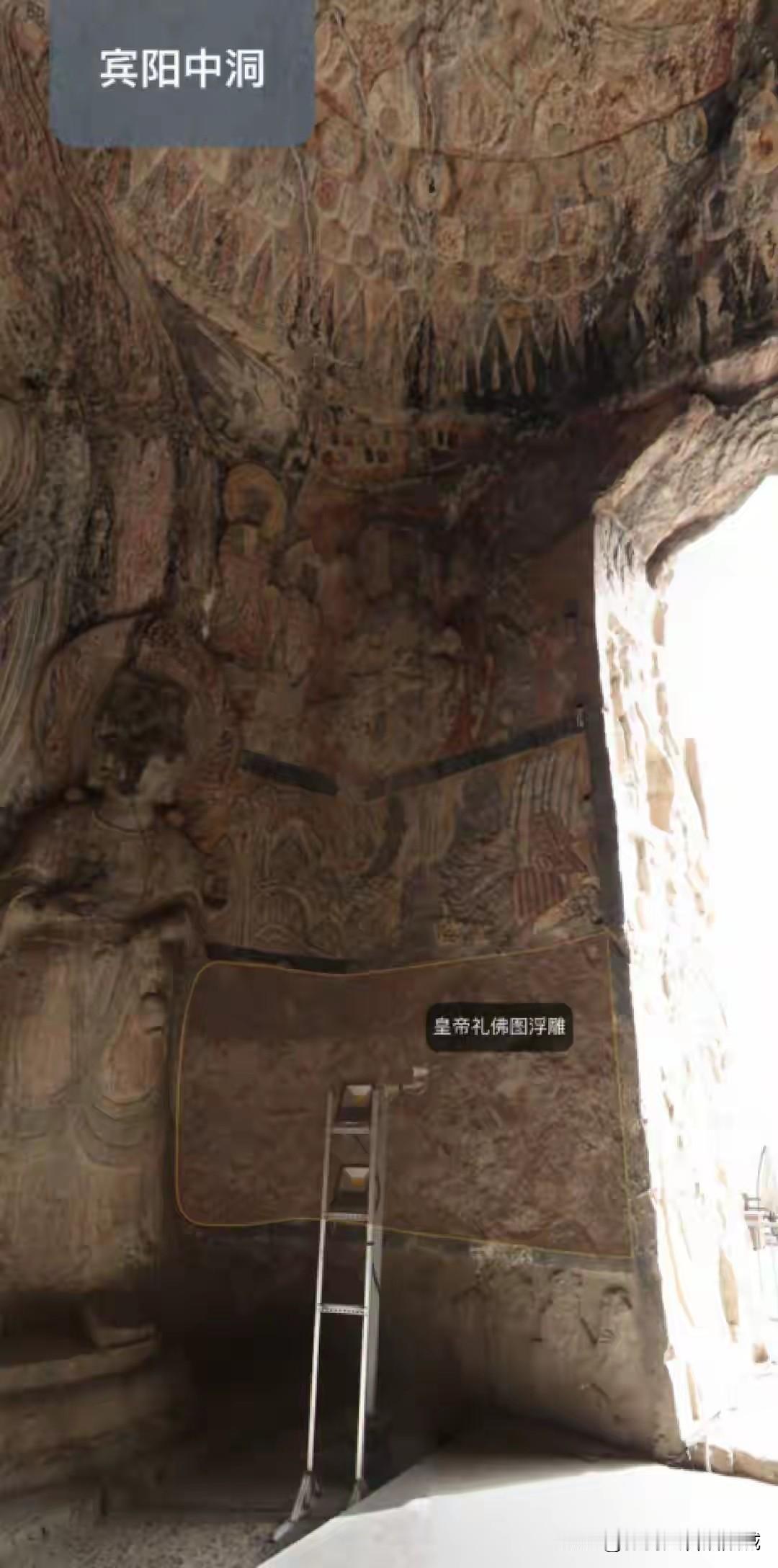 接着,他们开始对历史艺术价值最高的北魏宾阳中洞门内的浮雕《皇帝礼佛图》进行了致命性破坏盗凿。此浮雕被分凿成19大块和众多小块装箱后运到了美国。部分残块被岳彬留在北京,解放后在其家中被查获。
