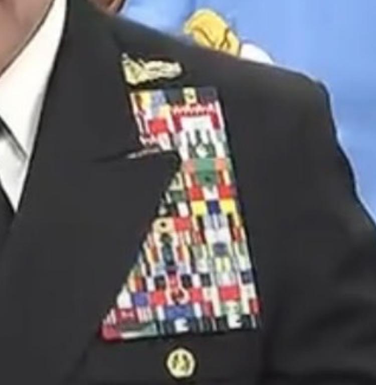 美军中央司令部司令布拉德·库珀海军上将,这是我见过勋表最多的美军军官,一共17排。这个人履历很丰富,曾经担任过导弹驱逐舰、导弹巡洋舰舰长,驻韩美军海军司令、驻日本第7远征打击大队/第7舰队两栖部队司令、第五舰队司令、大西洋舰队水面舰艇司令以及中央司令部司令。参加过海湾战争、阿富汗战争、科索沃战争、波黑战争、海地军事干预行动以及多次反恐行动。所以他的勋略重海外部署章很多而且很多次。