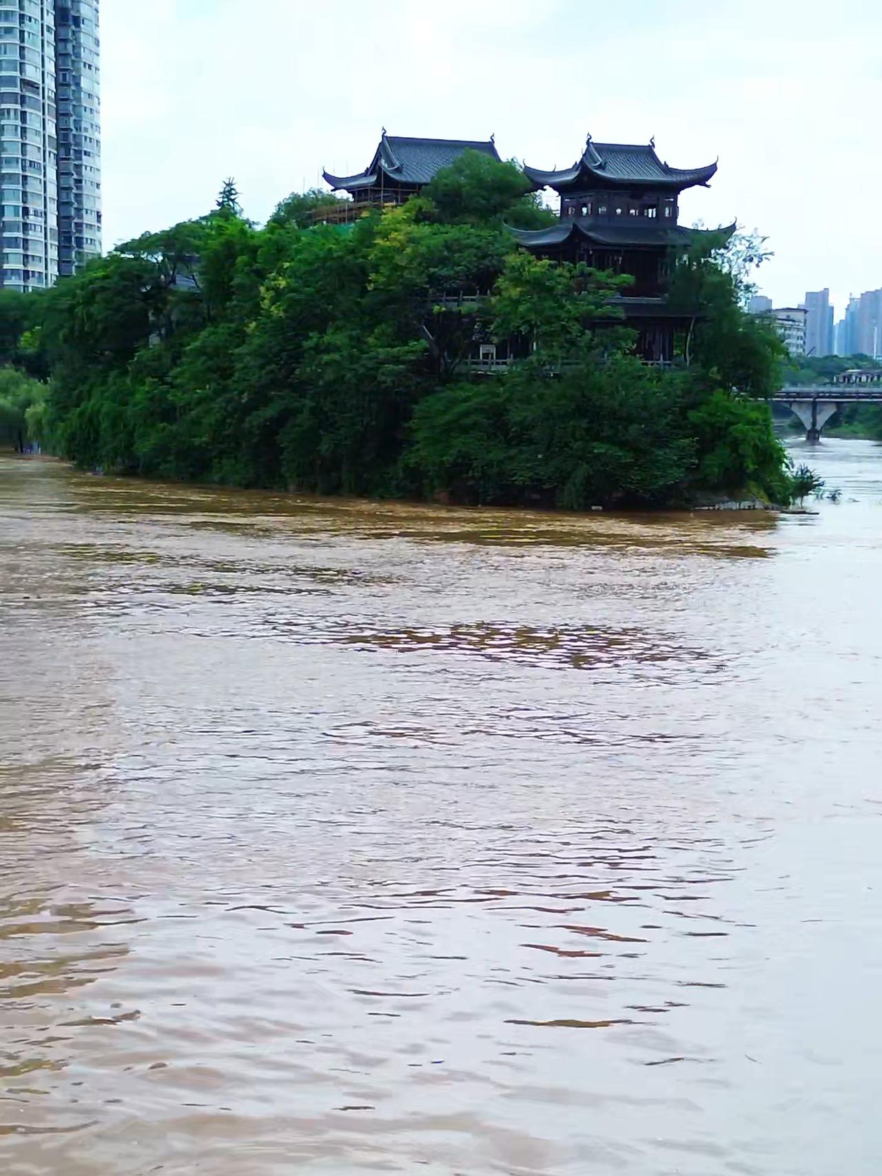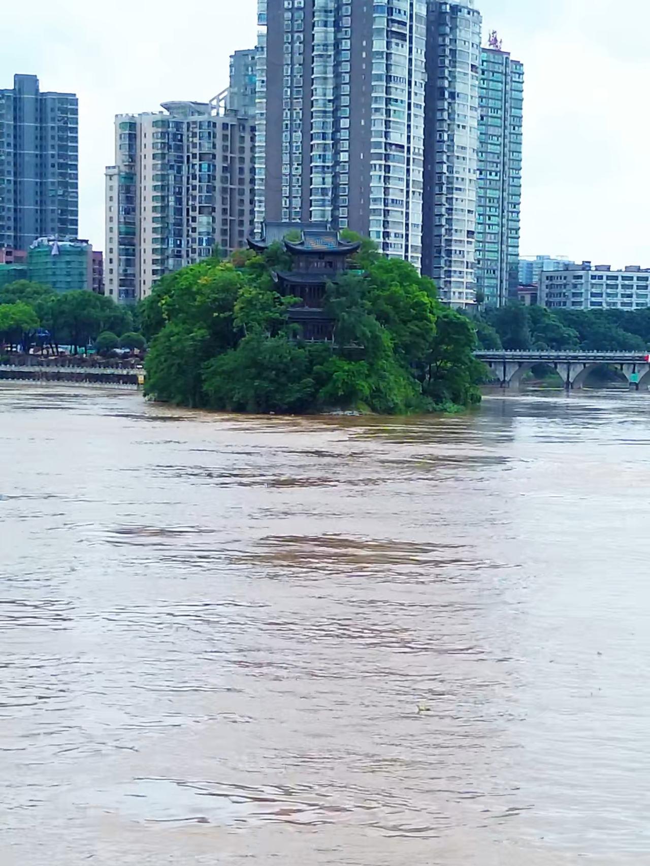受持续降雨影响,4月17日湘江水位不断攀升,沿江亲水平台、步道被淹,石鼓书院周边江水浑浊泛黄!