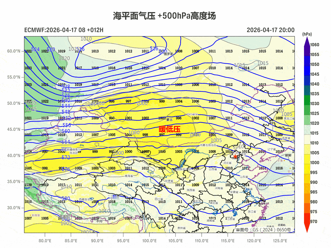 【大风沙尘】18日冷空气进入蒙古国的暖低压,搓合出一个气旋。气旋和冷高压之间得气