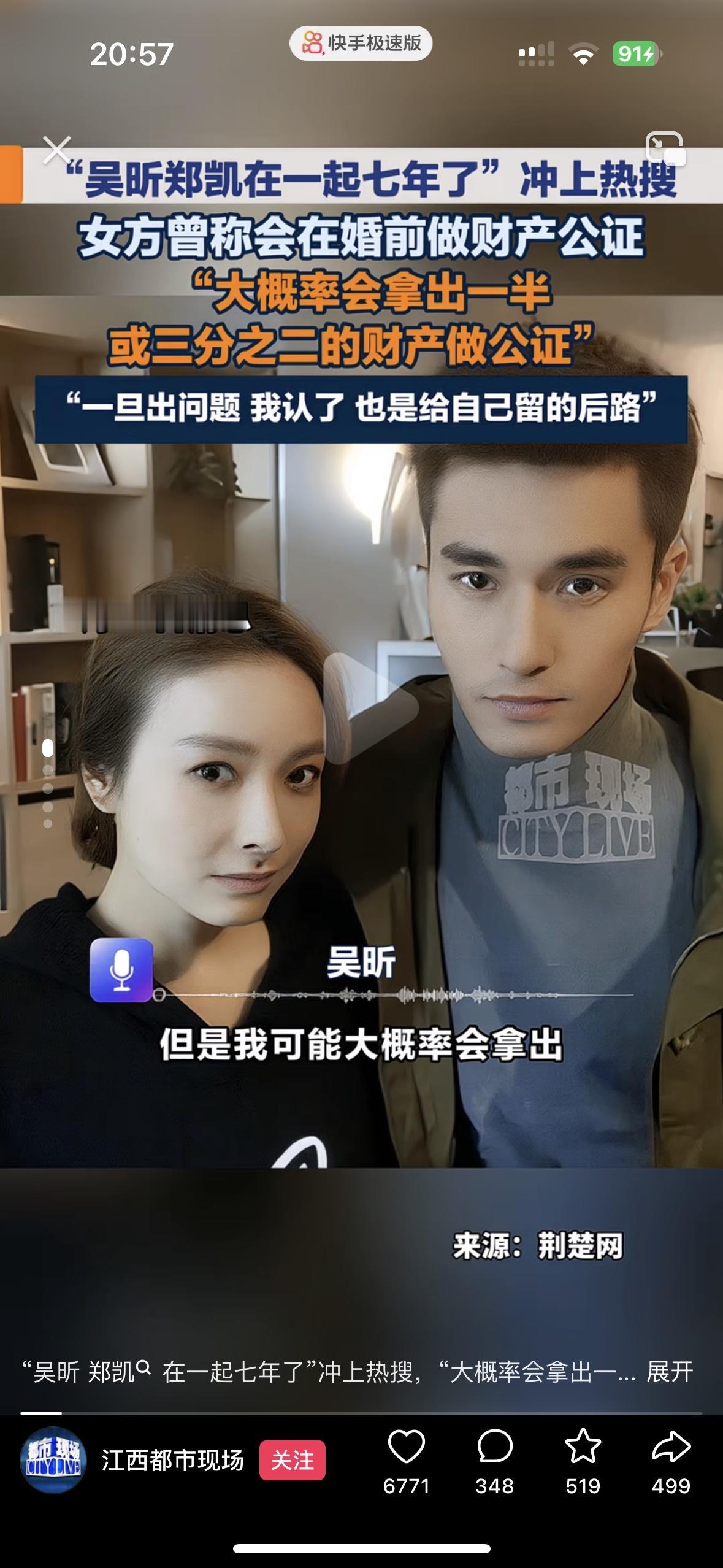 吴昕说自己一定会做财产公证,甚至拿出一半或者三分之二的财产来做公证,也就是说她将来结婚和她男友郑凯,只会拿出少部分或者一小部分的财产跟他共同生活。那男方为啥要拿出全部的财产来呢?