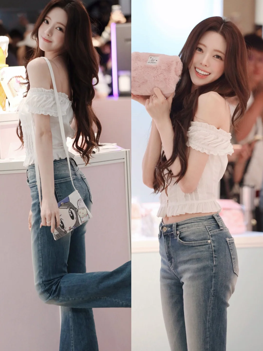 申有娜近日一组线下活动穿搭,白色上衣搭配牛仔裤,身材曲线好曼妙,太美了!