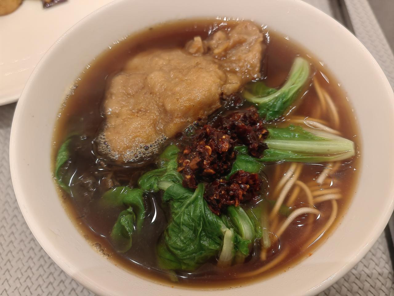 海宁盐官的酒店早餐。黑猪肉馅馒头,豆腐花,碱水面。