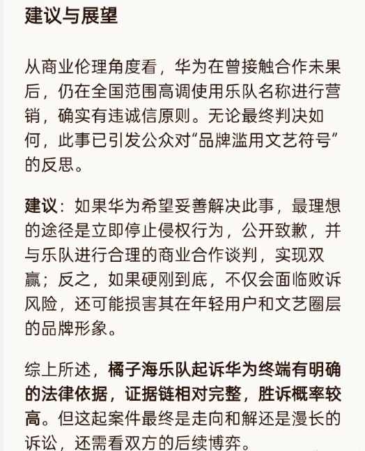 客观说,华为Pura90系列宣传橘子海的时候,我根本没有想到什么橘子海乐队,更没有想到橘子海的视觉效果是怎样的,Deepseek却给出了不同的法律看法,华为终端还可能败诉……抛开争端不谈,对华为Pura90系列大麦没啥影响,就是一点水花,让法律团队去解决吧