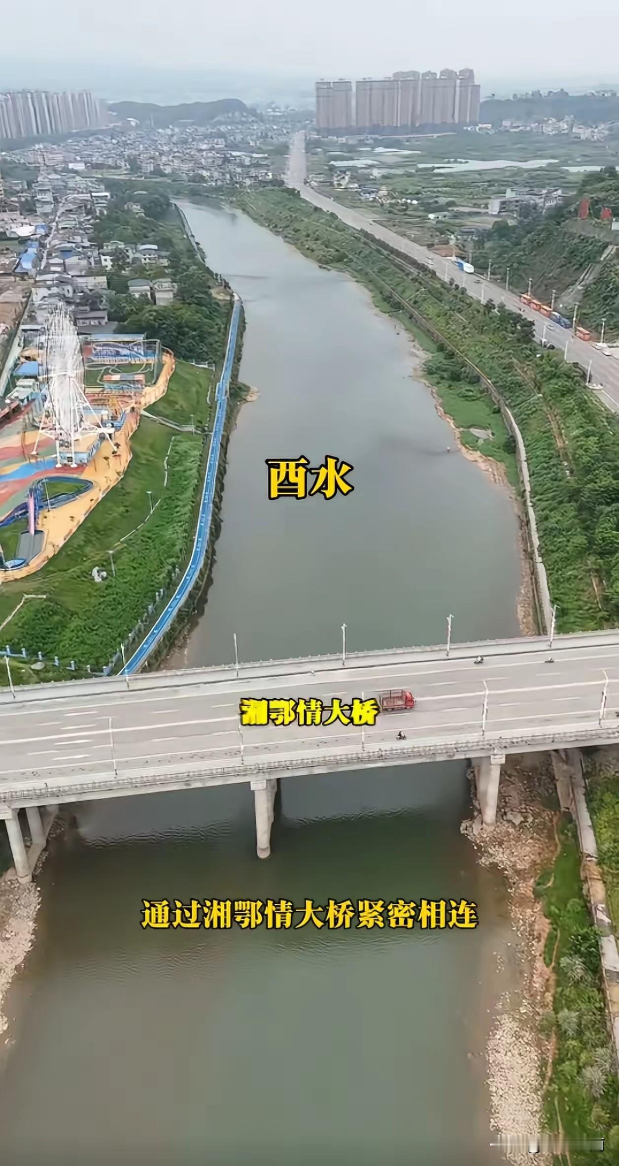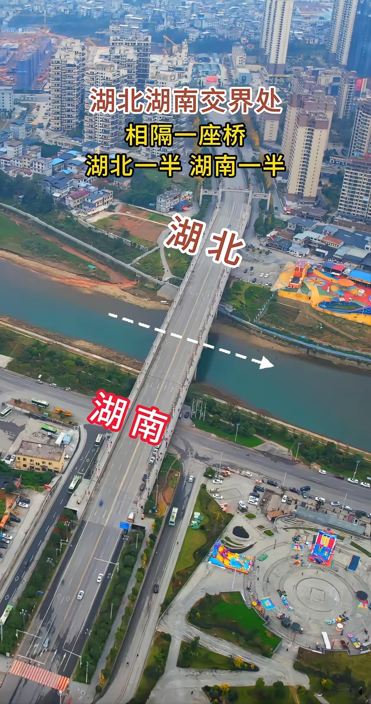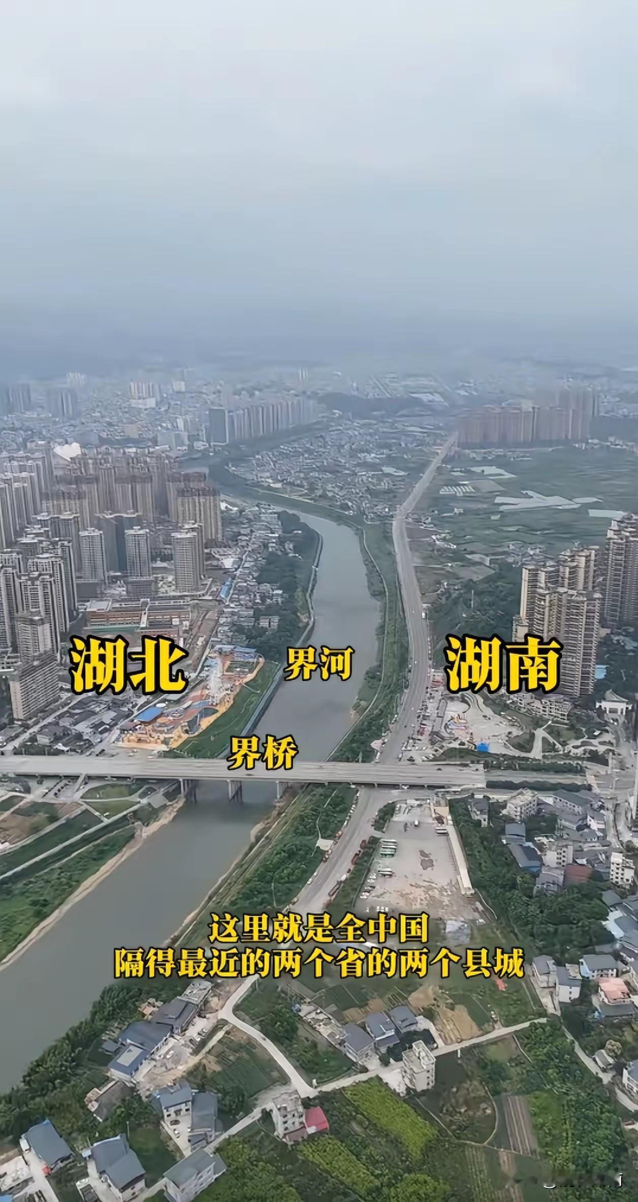 没想到,挨得这么近的两座城竟然分别属于不同的省! 在湖北和湖南交接的地方,一水之