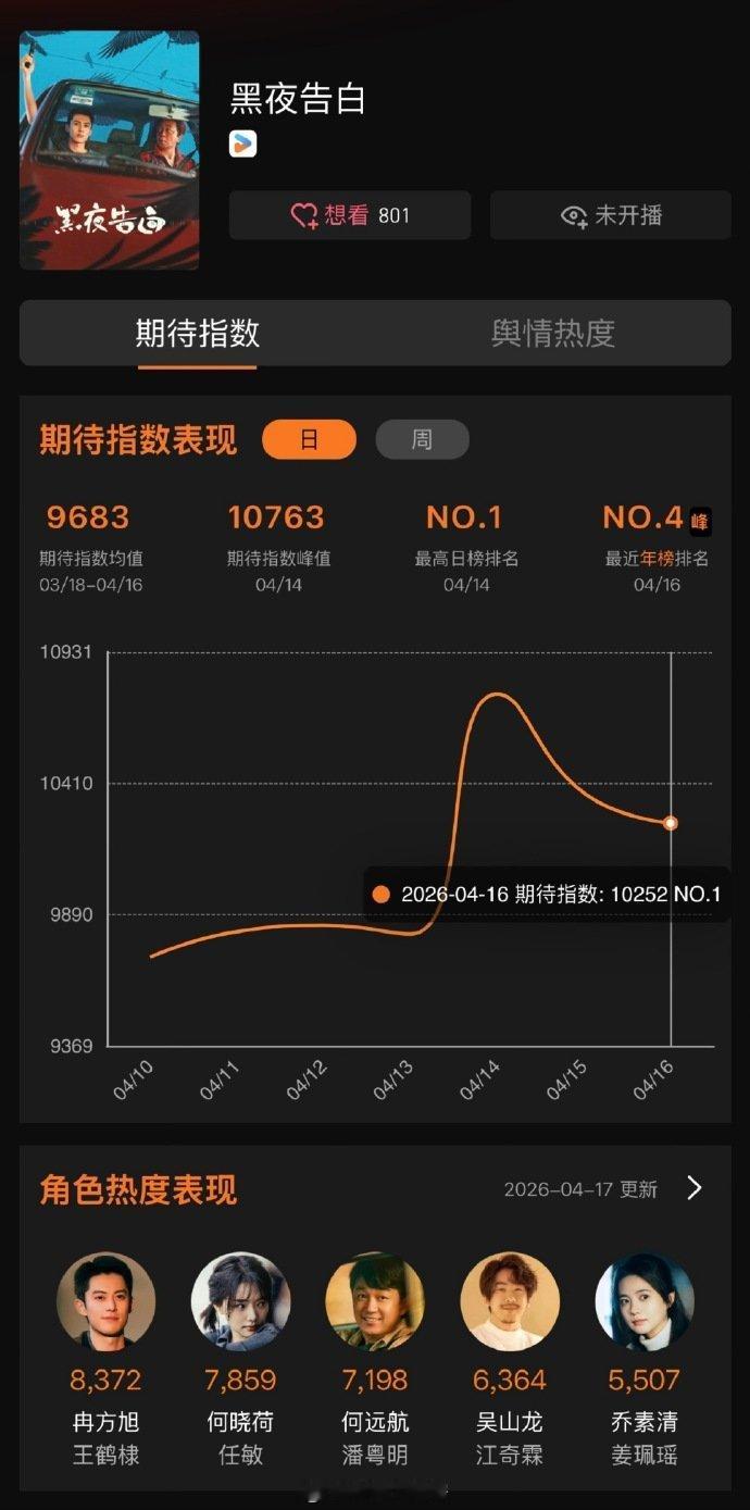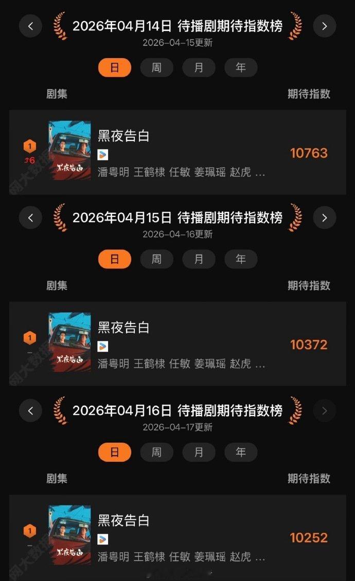 王鹤棣主演的《黑夜告白》已经连续三天拿下待播剧期待指数第一☝🏻