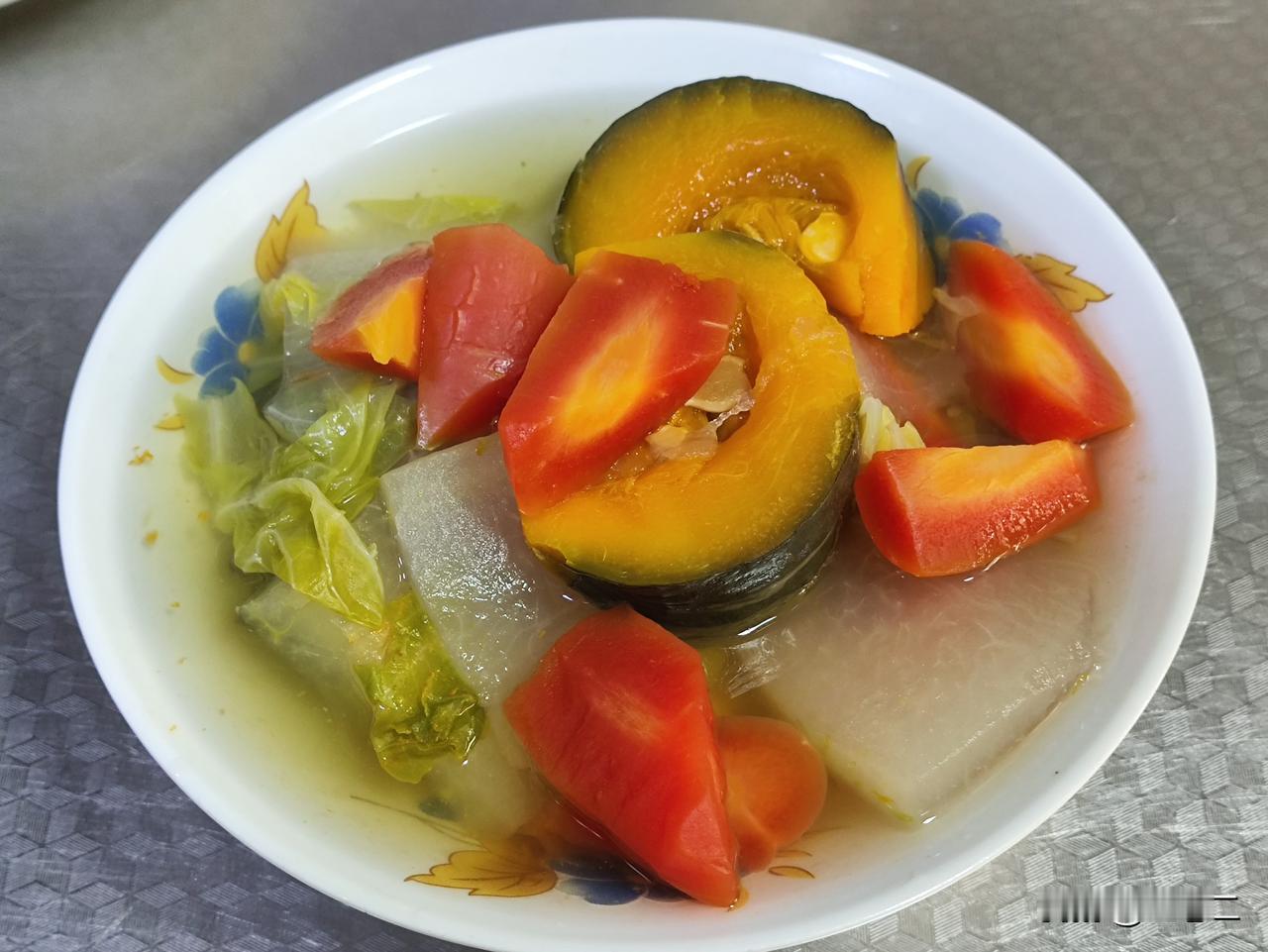 四月十七日午餐分享来啦!有酸菜烧豆腐滑肉片,香气扑鼻;有蔬菜汤(打卡十一天),健